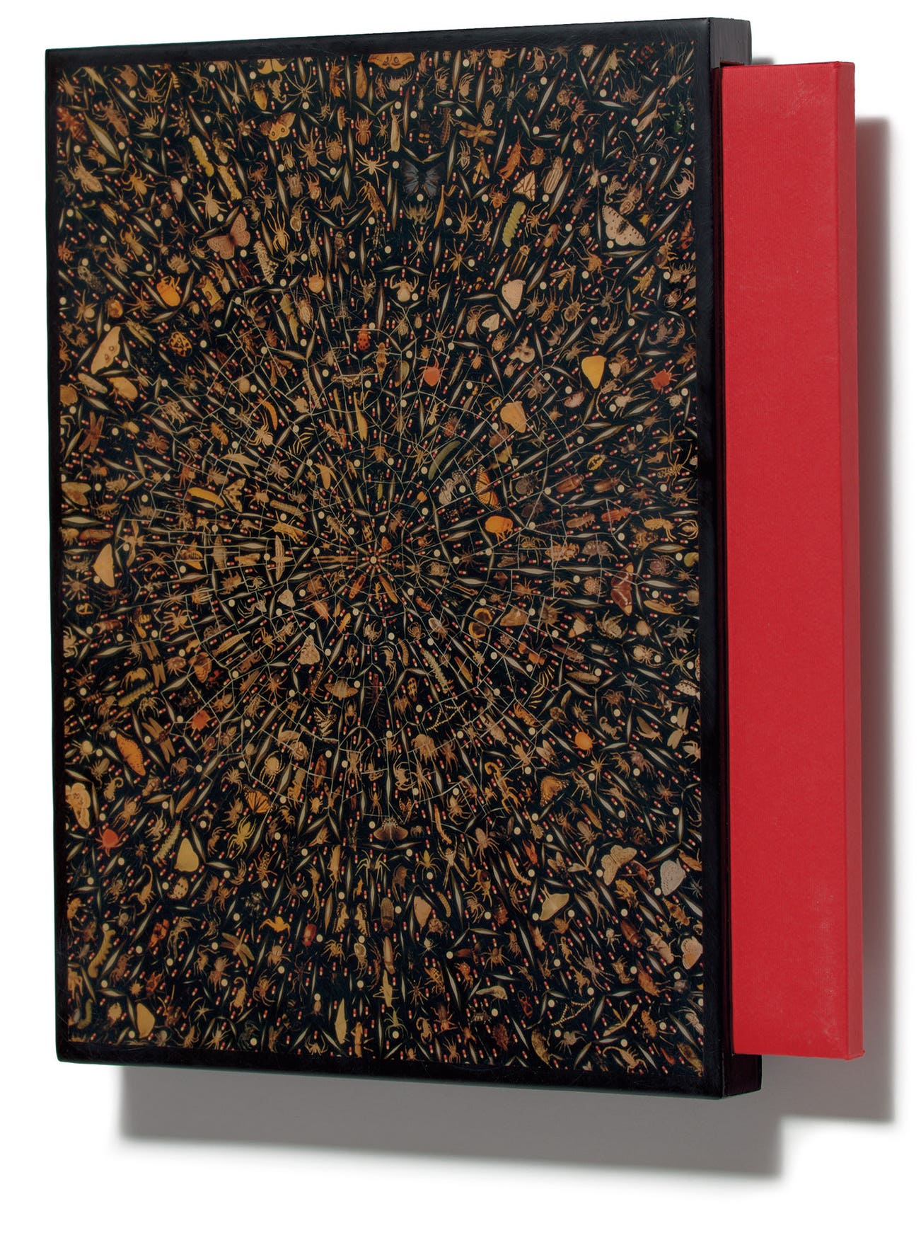 The complete set of one etching, three relief prints and five offset lithographs in colors, on wove paper, all bound and the relief prints tipped-in (as issued), all contained in the original wood and epoxy, hangable, presentation box designed by the artist.