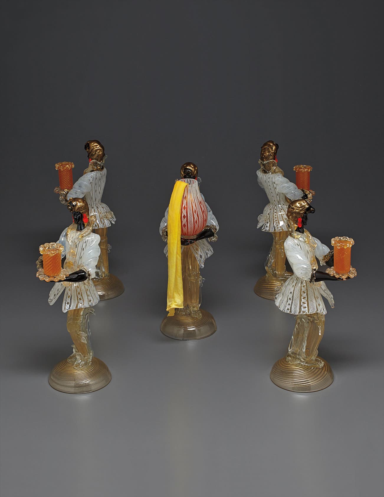 Murano glass candlesticks, in 5 parts, water, food coloring