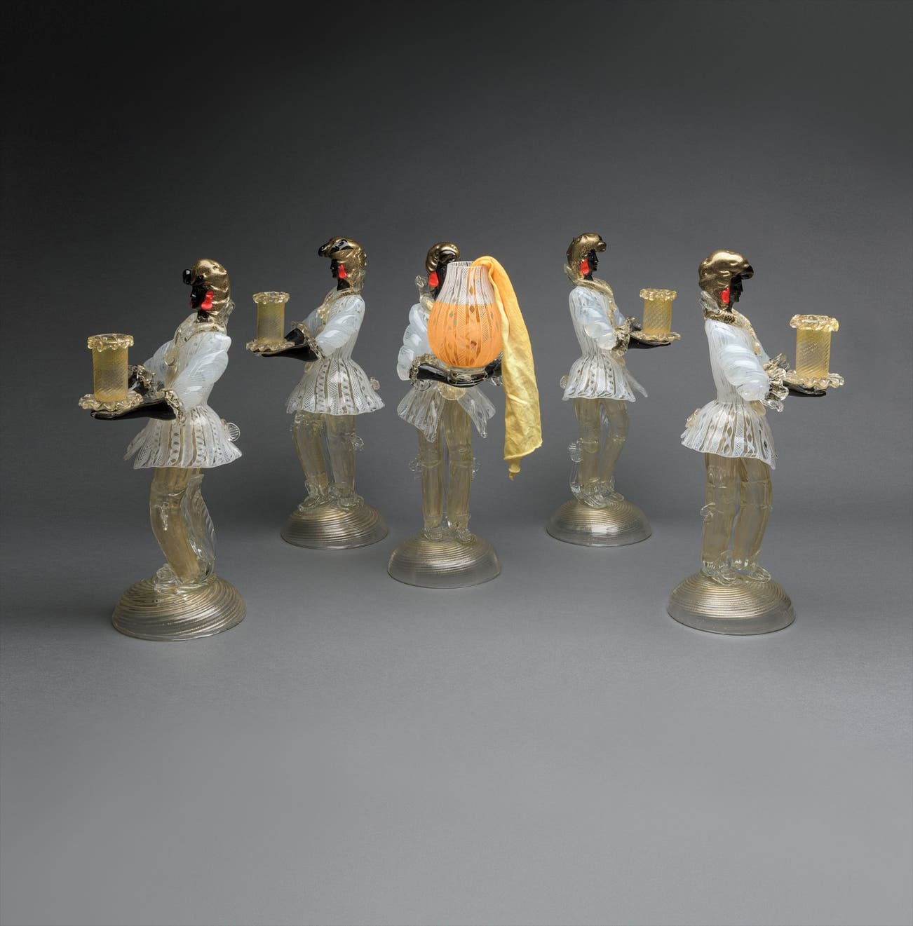 5 Murano glass candlesticks, water, food coloring