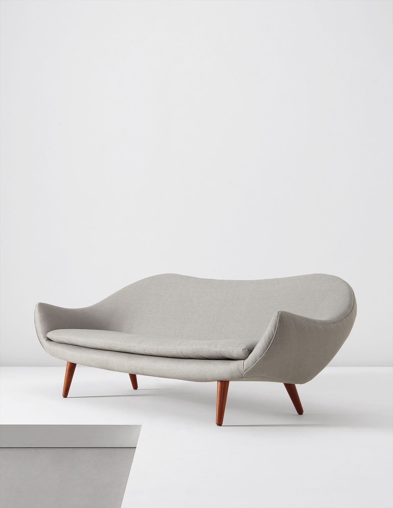 Born in the small town of Bergen on Norway’s west coast, Fredrik A. Kayser mastered his craft at an early age; his father, Trygve Kayser, owned a furniture business and had encouraged his son to pursue the same profession. Following in his father’s footsteps, the younger man opened his own factory in 1948. Although this venture failed to be a commercial success, Kayser went on to work for the manufacturing company Rastad & Relling in Oslo. A highly skilled craftsman with a vision for soft and organic forms, Kayser began designing for Vatne Møbler in 1956, where he would create his most classic designs. Kayser demonstrates these proficiencies in his elegant execution of a form that mimics a human smile.