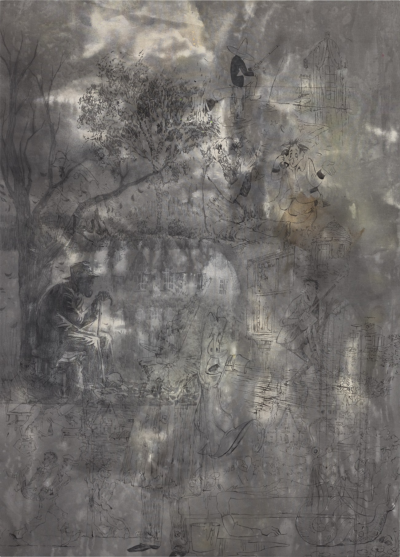 India ink, water color and pencil on canvas