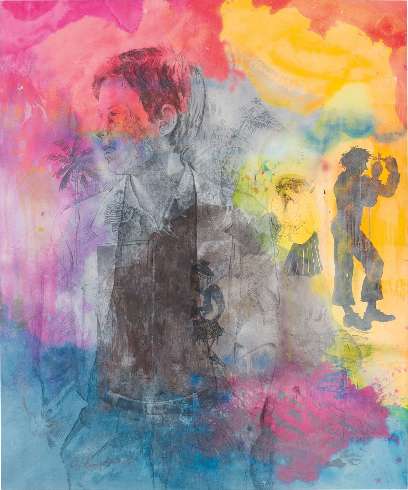 watercolour, acrylic, Indian ink, lacquer, pencil on canvas