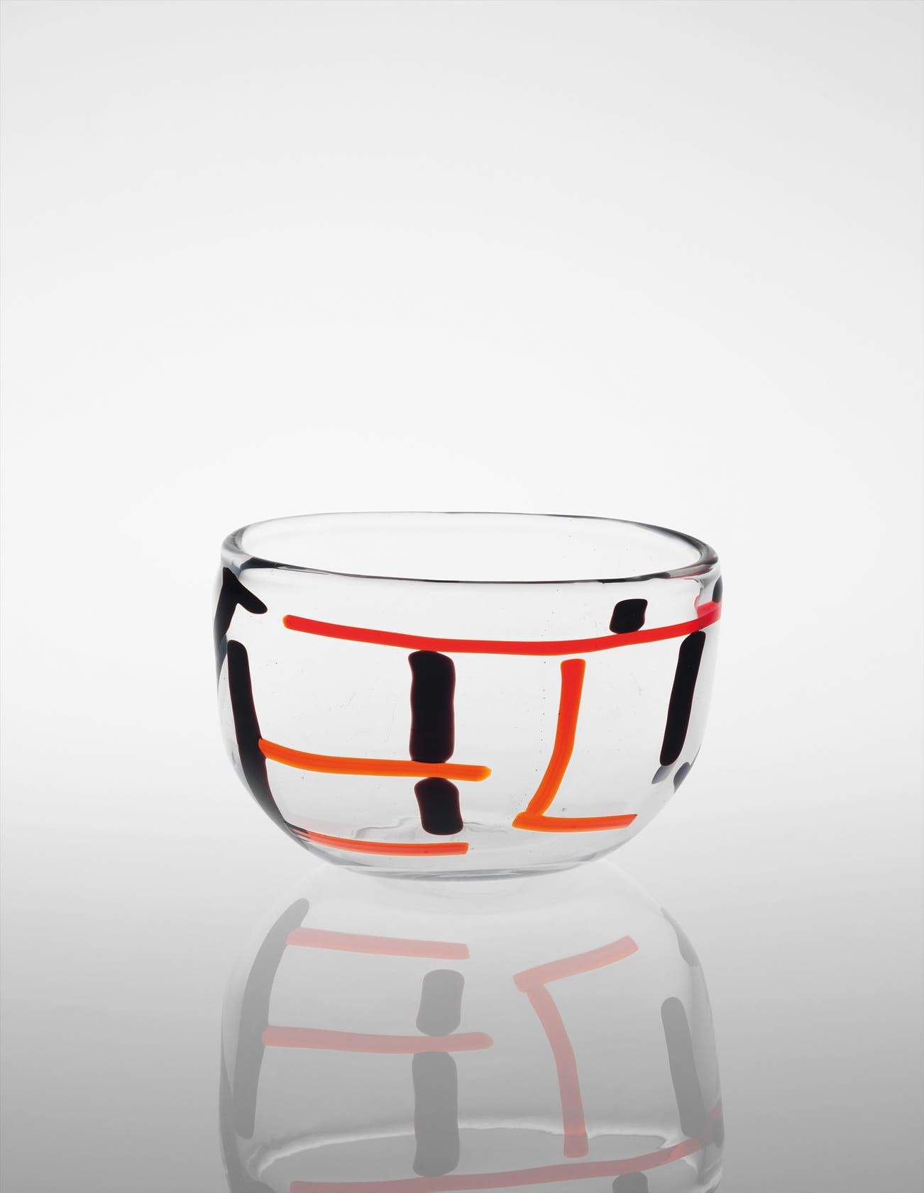 Clear glass with colored internal decoration.