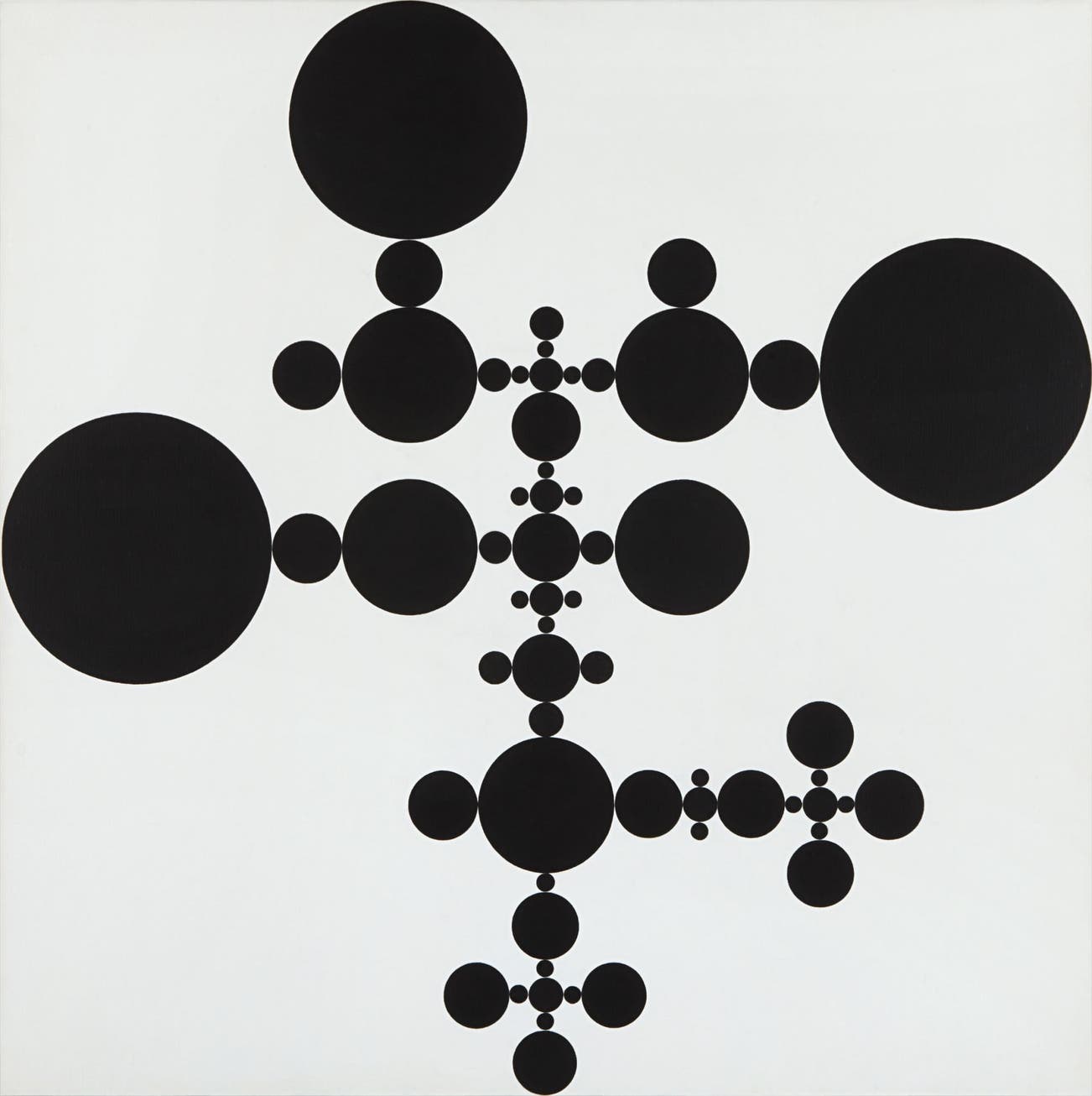 The present lot, Secuencia de tréboles (Sequence of Clovers) has its conceptual origins in Orozco’s fascination with the complexities of nature and our tangible reality. The geometric form of the circle is commonly associated with the natural world, referencing the cycle of life as well as the atomic particles that makeup our bodies and surroundings. The circle comes up constantly in Orozco’s oeuvre, signifying his passion for the study of organic motifs and the creative potential of human consciousness.