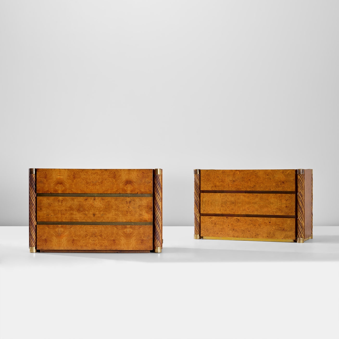 Burr maple-veneered wood, Malacca rattan, brass.