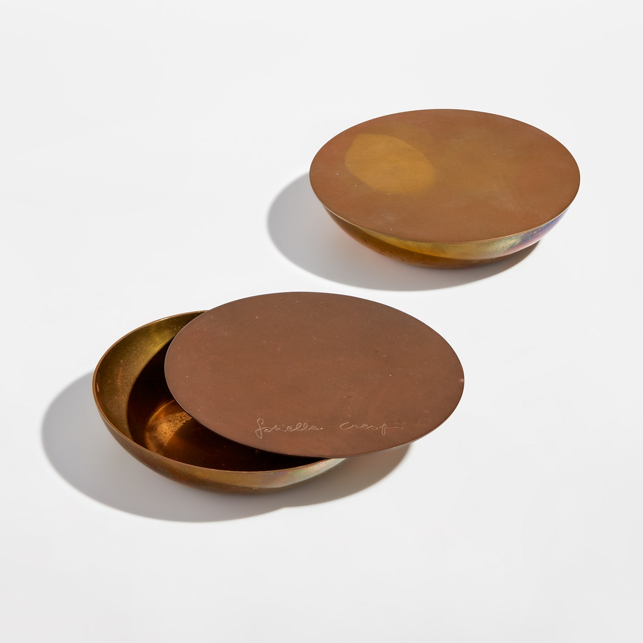 Underside of each with artist's facsimile signature. One ashtray additionally impressed with artist's mark on the underside and artist's facsimile signature on the lid. Together with a certificate of authenticity from the Archivio Gabriella Crespi.