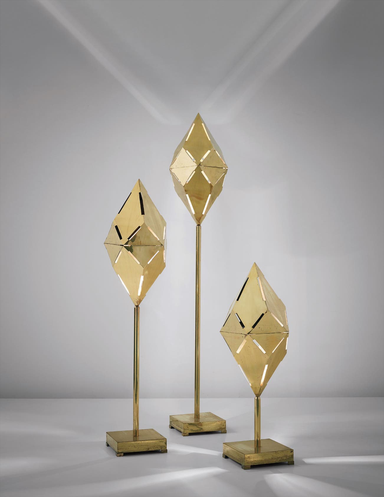 Produced by Gabriella Crespi, Milan, Italy. Two lamps impressed twice with facsimile signature Gabriella Crespi, one lamp impressed with facsimile signature Gabriella Crespi BREV and facsimile signature Gabriella Crespi, lamps impressed twice with 1, 2 and 6 respectively.