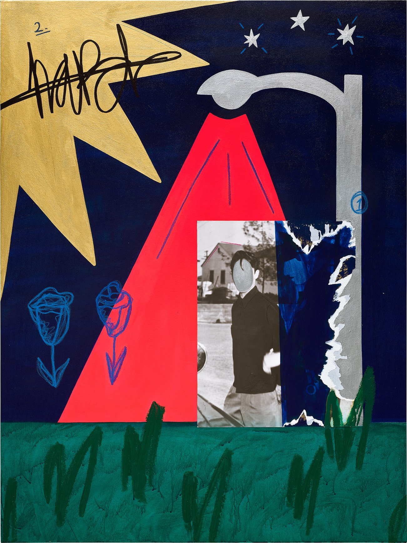 acrylic, oilstick, oil pastel, Sharpie, spray paint and archival pigment print on canvas