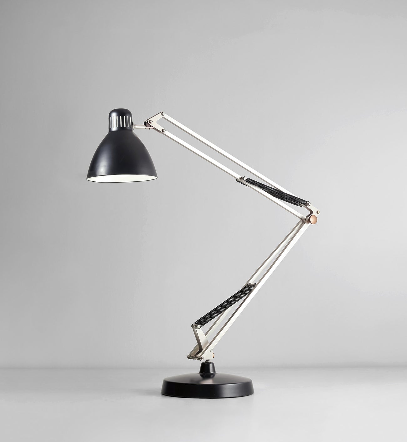 Gaetano Pesce named the present towering floor lamp after the ancient Ammonite god Moloch, to whom certain Levantine tribes sacrificed children by fire. Fed by the offspring of its own progenitor, Pesce’s lamp derives from designer Jac Jacobsen’s ‘L-1’ adjustable table lamp (1937), of which Norwegian manufacturer Luxo has produced more than 25 million examples. The ‘Moloch’ presides everywhere at the same time, seeing, allowing us to see, at the end of its spring-balanced arm.
