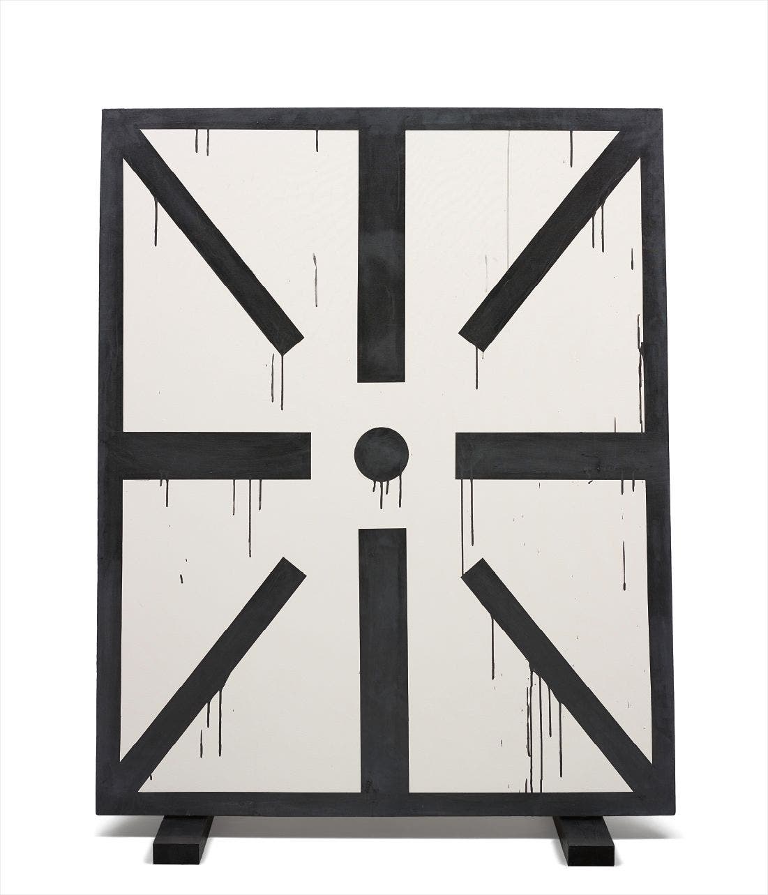 acrylic on canvas with two painted wooden blocks
