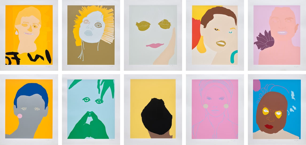 each signed and titled respectively 'Gary Hume FRANCIS; Gary Hume LADY PARKER; Gary Hume YELLOW HAIR; Gary Hume WHISTLER; Gary Hume CERITH; Gary Hume ADULT; Gary Hume YOUNG WOMAN; Gary Hume FUNNY GIRL; Gary Hume ANGEL; Gary Hume POOR THING' lower margin
