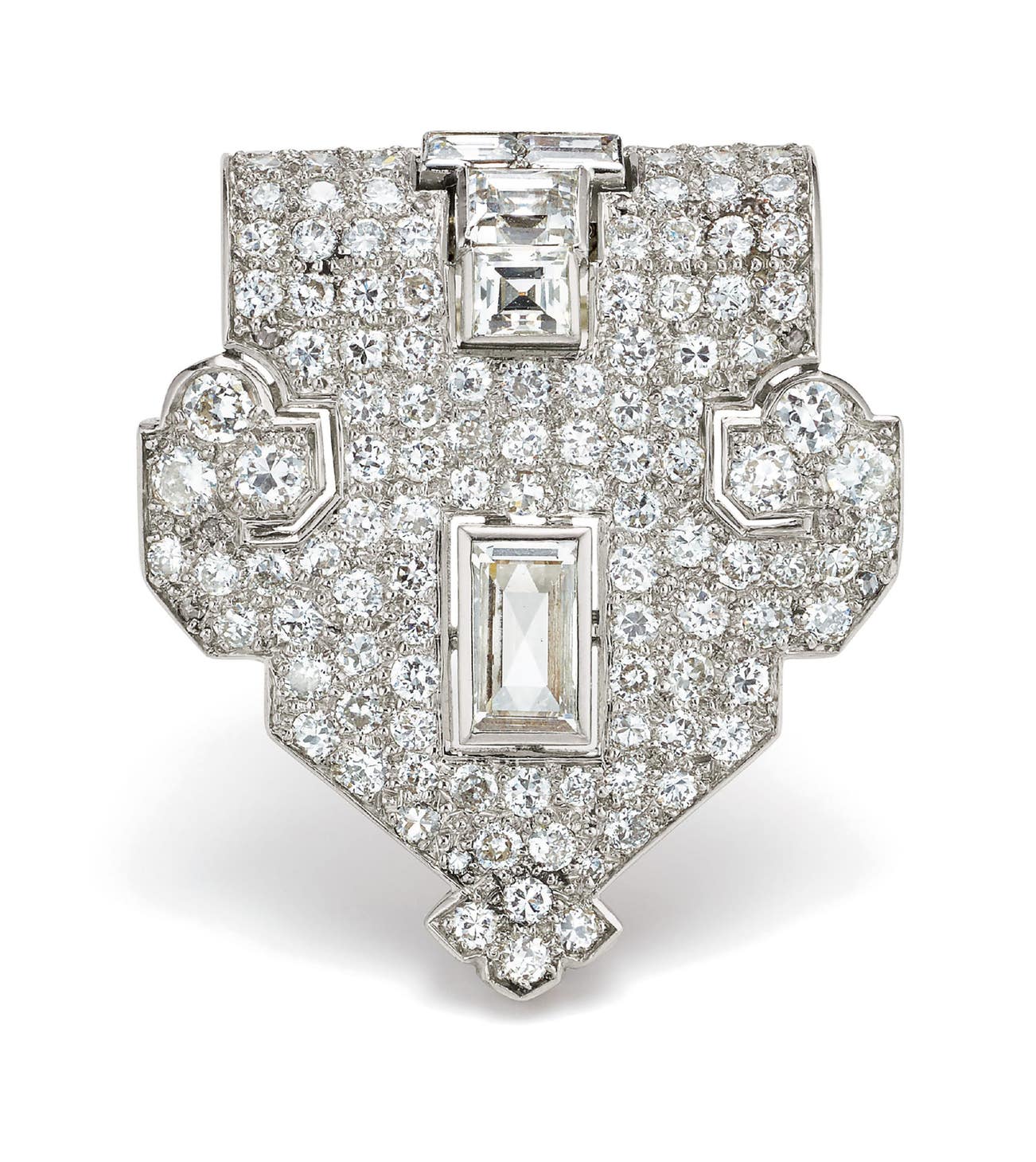 An Art Deco Diamond and Platinum Clip Brooch