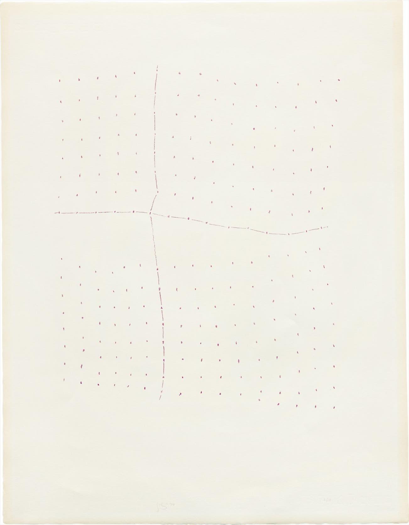 Gego's experimentation with pure abstraction in the late 1950s culminated in her most important series, produced in the 1980s, titled Dibujos sin Papel (Drawings Without Paper). In this series, she utilized industrial materials in suspended wire sculptures. These seemingly banal yet technically sophisticated sculptures are representative of the artist's mature style and were undoubtedly informed by her training as an architect. With the series Reticulárea ambiental, Gego built upon the Dibujo sin Papel and further highlighted her interest in spatial abstraction by creating expansive, engulfing sculptures of metal scraps.