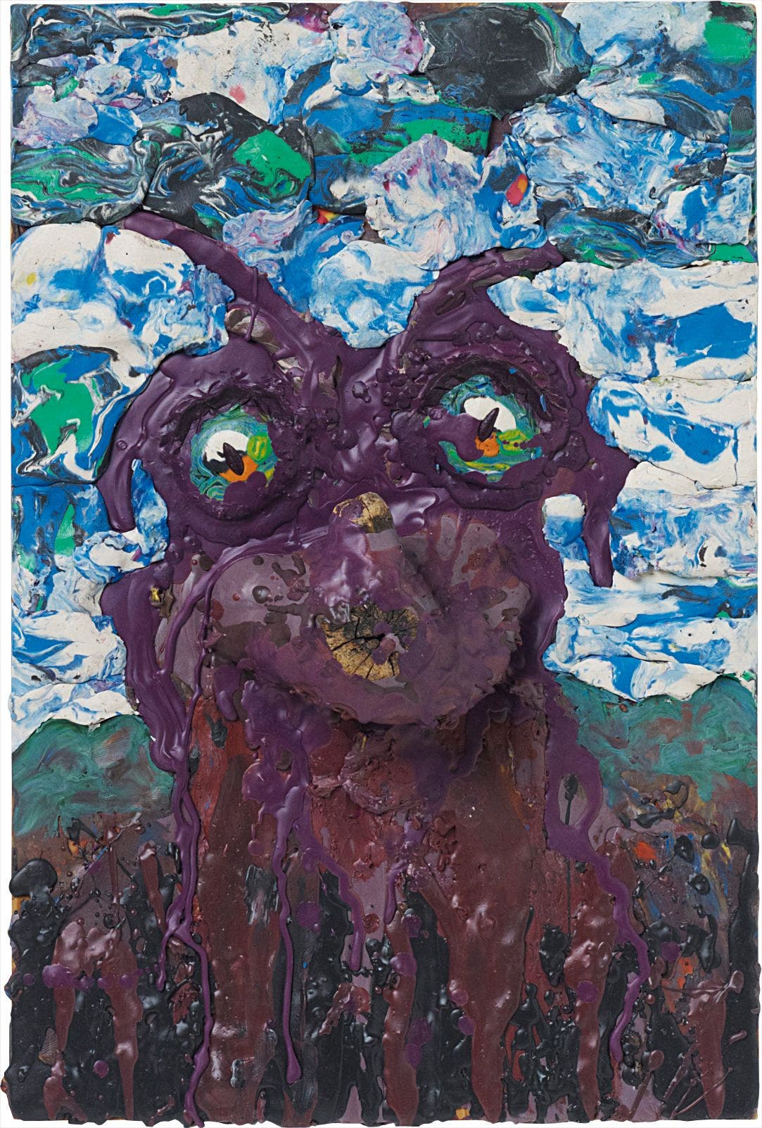 clay and wood on wooden panel