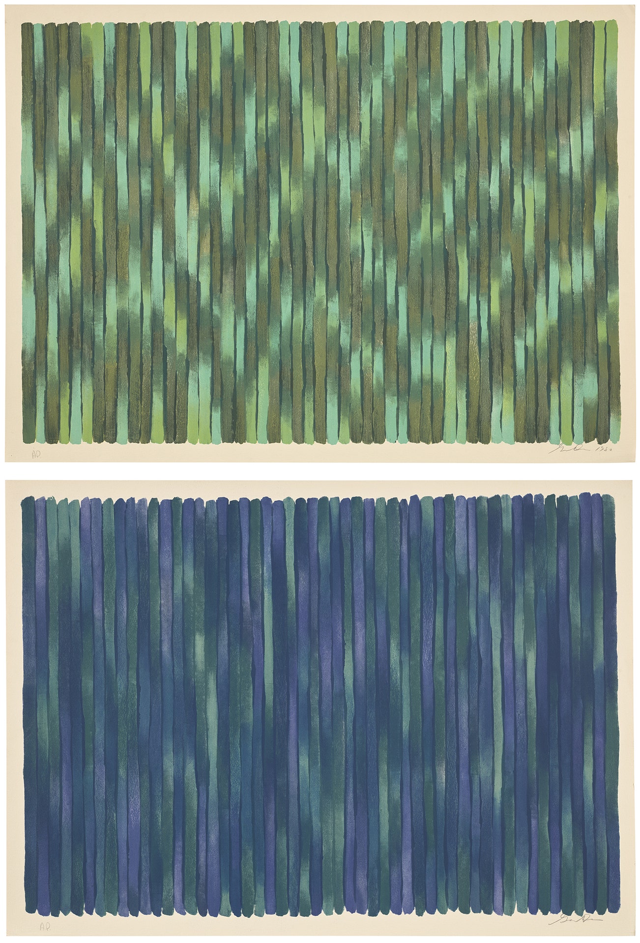 Two lithographs in colors, on Arches paper, with full margins.