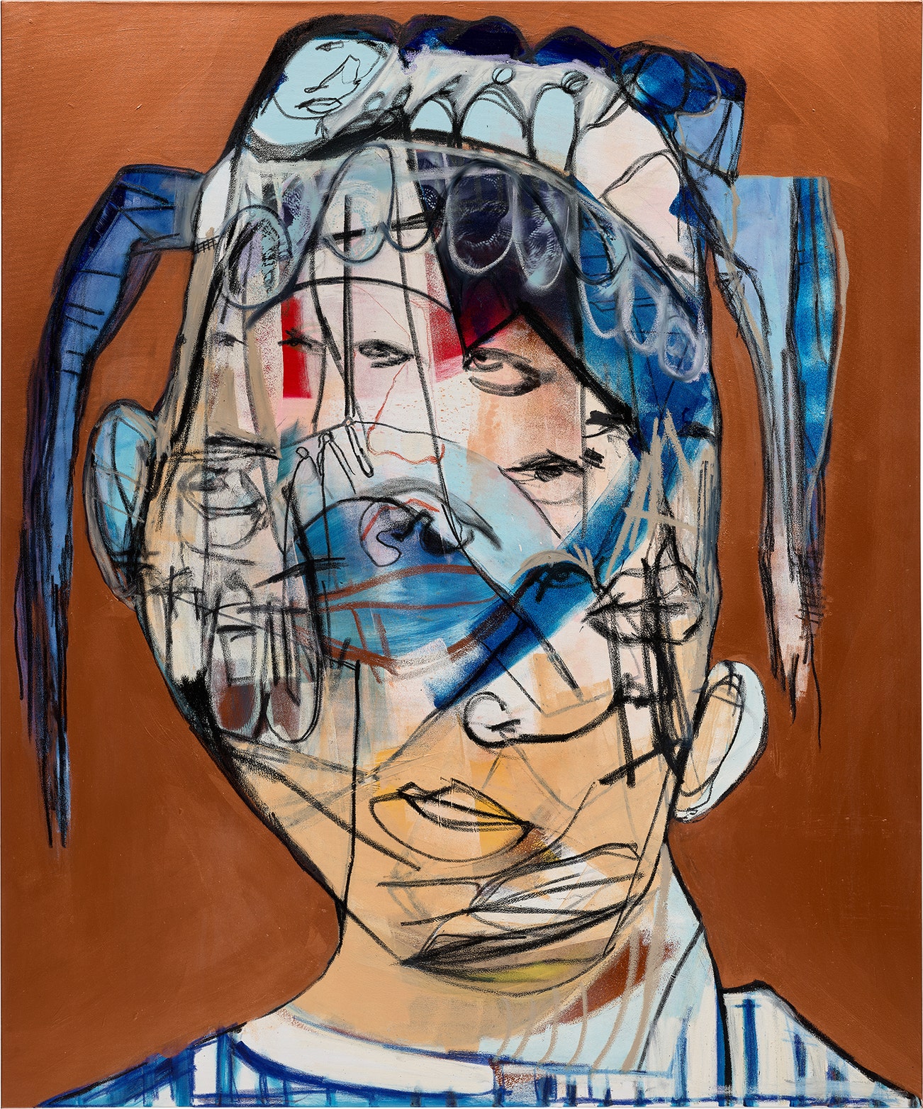 signed and dated "G—Tramaine 19'" on the turnover edge; signed, titled, inscribed and dated "THIS IS A PORTRAIT OF SAINT. MOTHER. MARY. This is really happening Gen. To God be all glory. The lord held my hand while this work came G—Tramaine" on the overlap