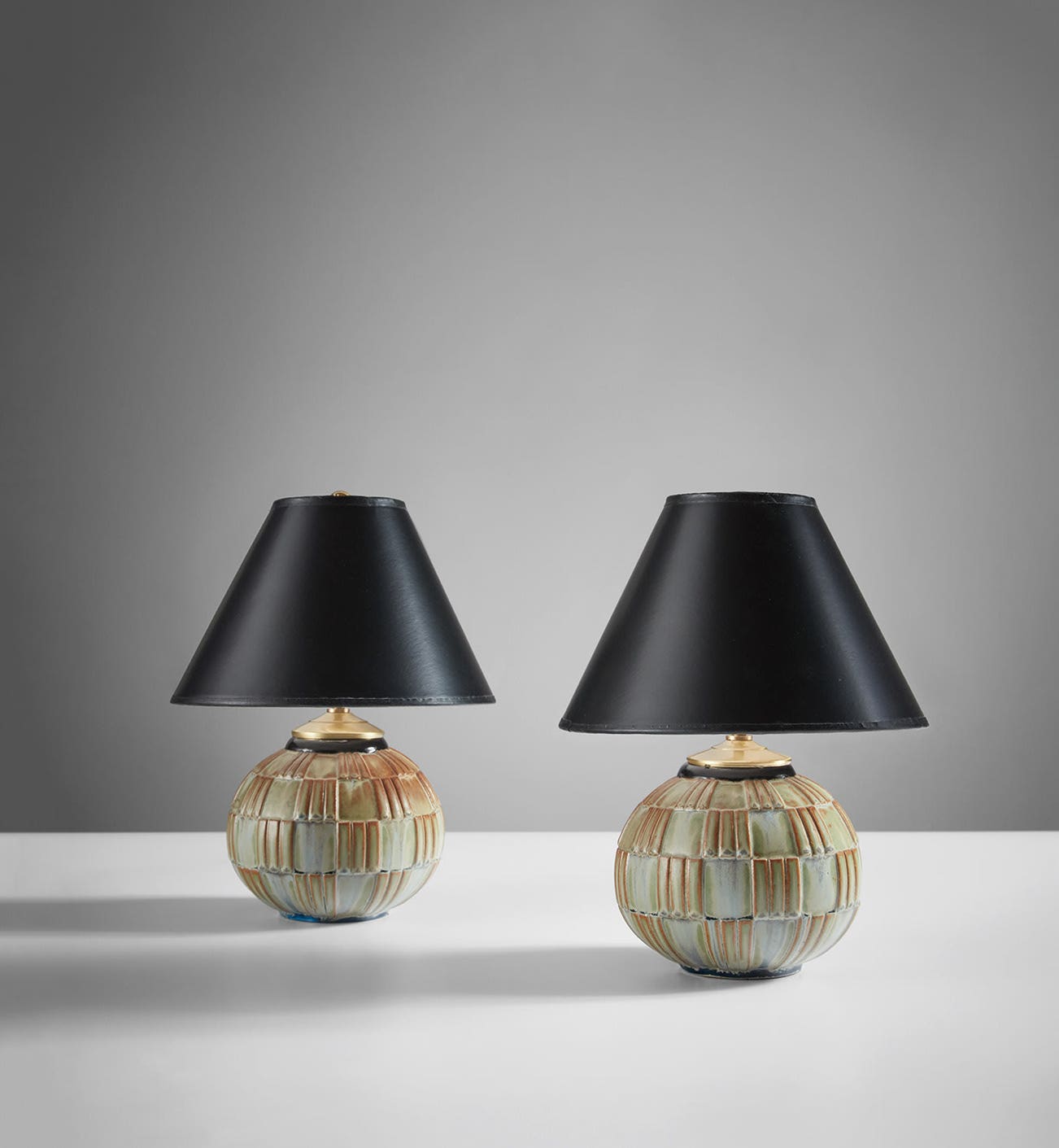 Glazed stoneware, paper shades.