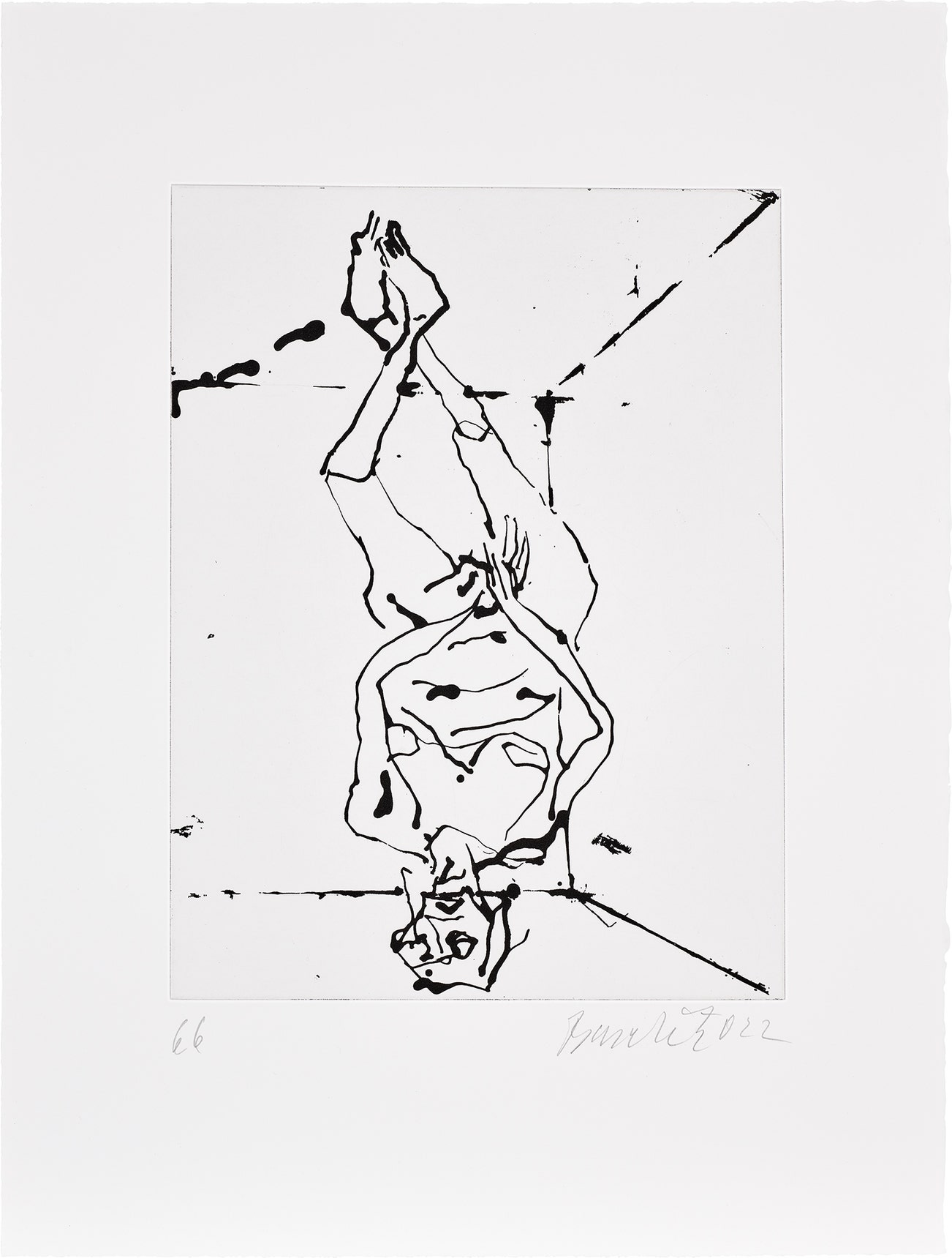Signed, dated and numbered 66 in pencil, from the edition of 100 (the edition comprised 50 impressions in black ink and 50 in red ink, and 10 artist's proofs), published by the Kunsthistorisches Museum, Vienna, for the exhibition Baselitz: Nackte Meister, 7 March to 25 June 2023, unframed.