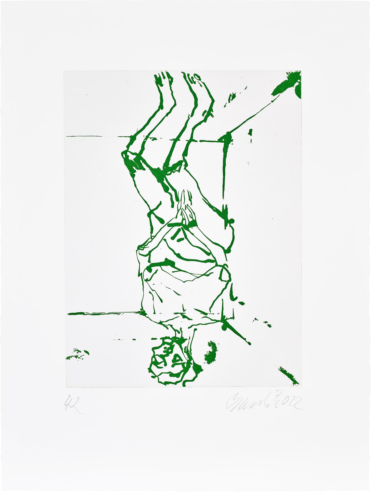 Signed in pencil, dated and numbered '42' in pencil, from the edition of 100 (the edition comprised 50 impressions in blue and 50 in green), published by the Serpentine Galleries, London, for the exhibition Georg Baselitz: Sculptures 2011-2015, 5 October 2023 to 7 January 2024, with their accompanying Certificate of Authenticity, unframed.