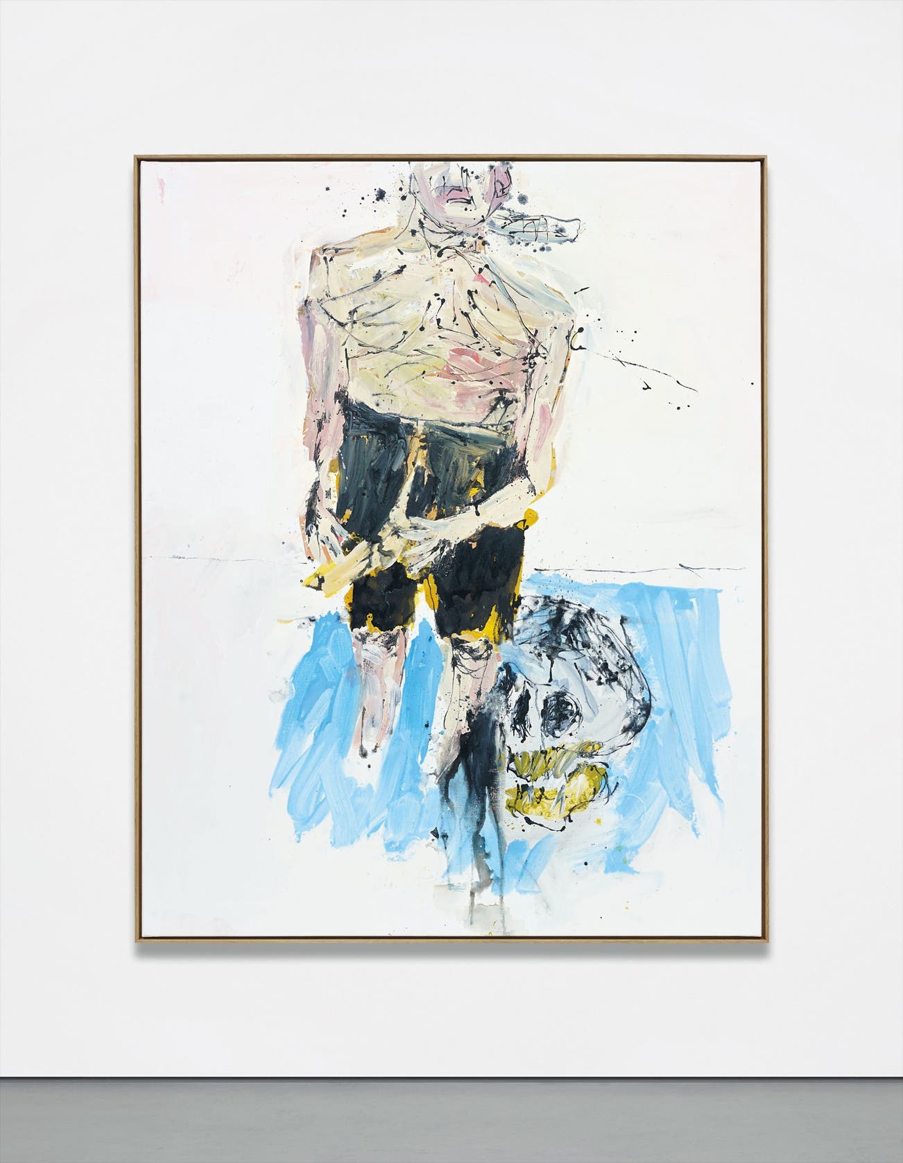 Big Night (Remix), 2008 is a striking example of the artist’s Remix paintings, in which he revisits his successful and provocative earlier works by making new versions of them upon years of reflection. The present lot is an updated version of his most controversial work, The Big Night Down the Drain, 1963, which depicts a faceless figure- often referred to as a young boy- holding an exaggerated phallus. The present lot shows the same figure, however, this time; the gestures of paint appear more rapid and spontaneous. The figure’s transparency appears before us like a ghost rising beyond the picture plane. The overall piece has a sense of vibrancy, due to the brighter colours utilised. Baselitz has transformed the once sombre and melancholic depiction into one that is more radically fresh and liberated. And yet, the subject remains- a flash of the past that never ceases to haunt.