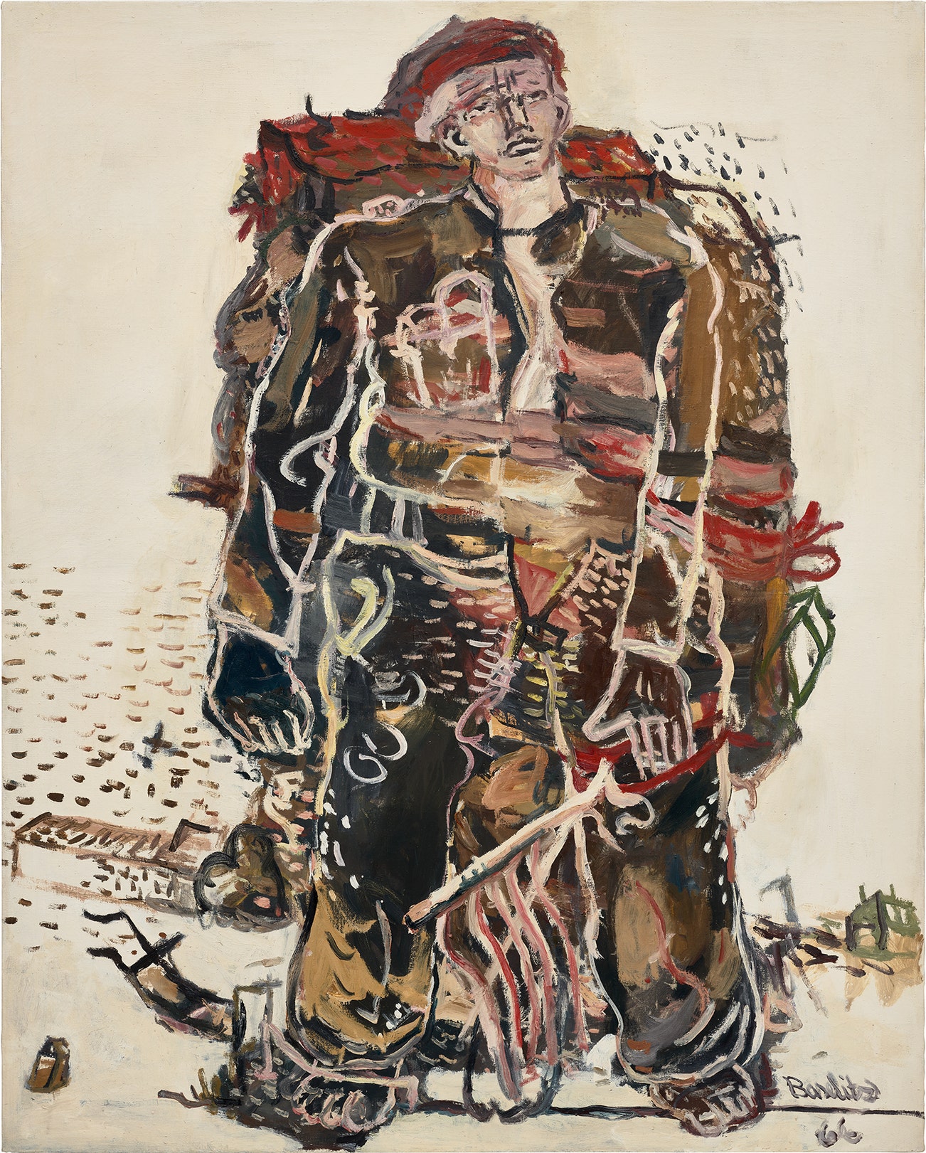 signed and dated “Baselitz 66” lower right; signed, titled and dated “Ein Roter 66 Baselitz” on the reverse