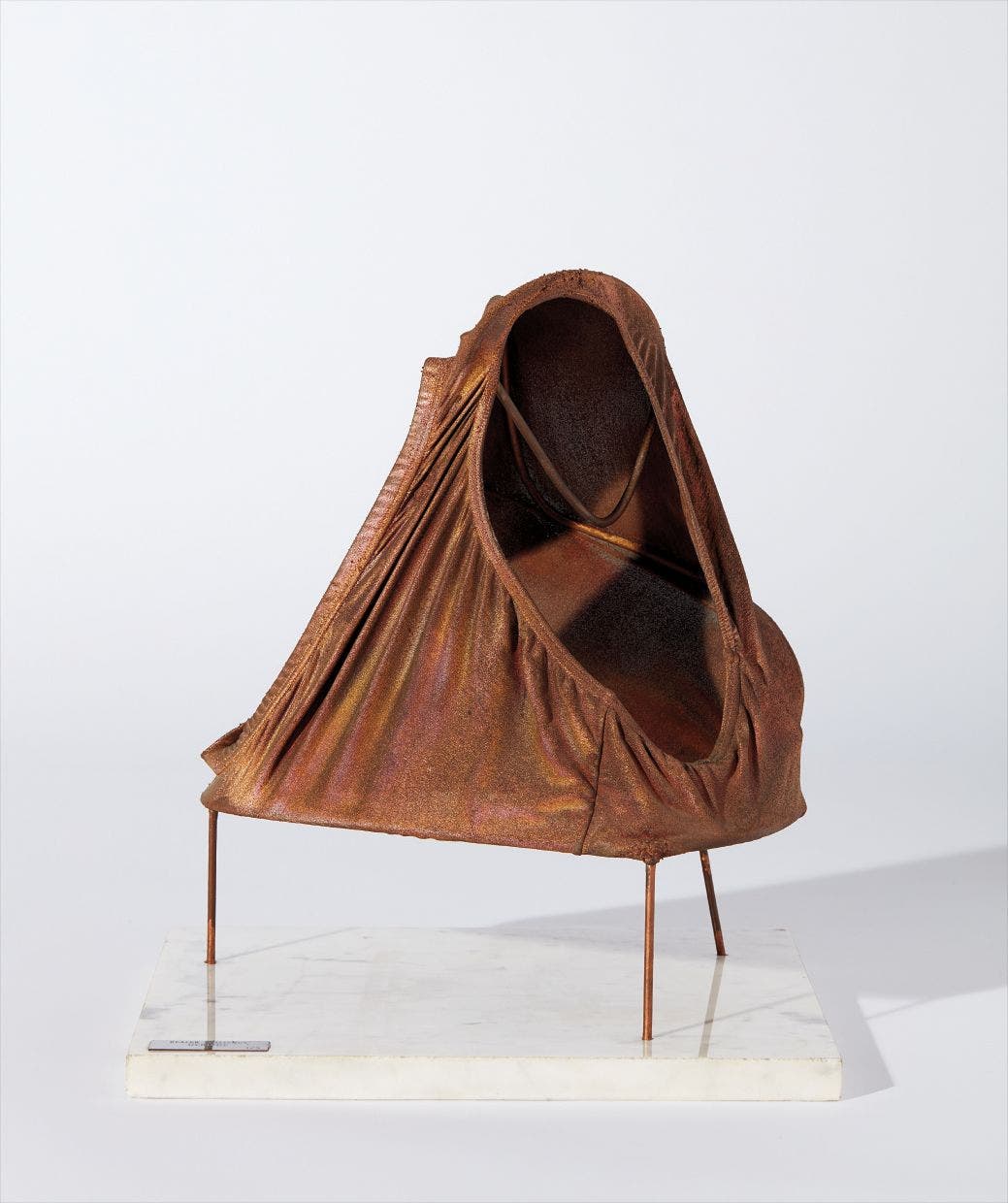 Copper armature, spray painted textile, and marble base.