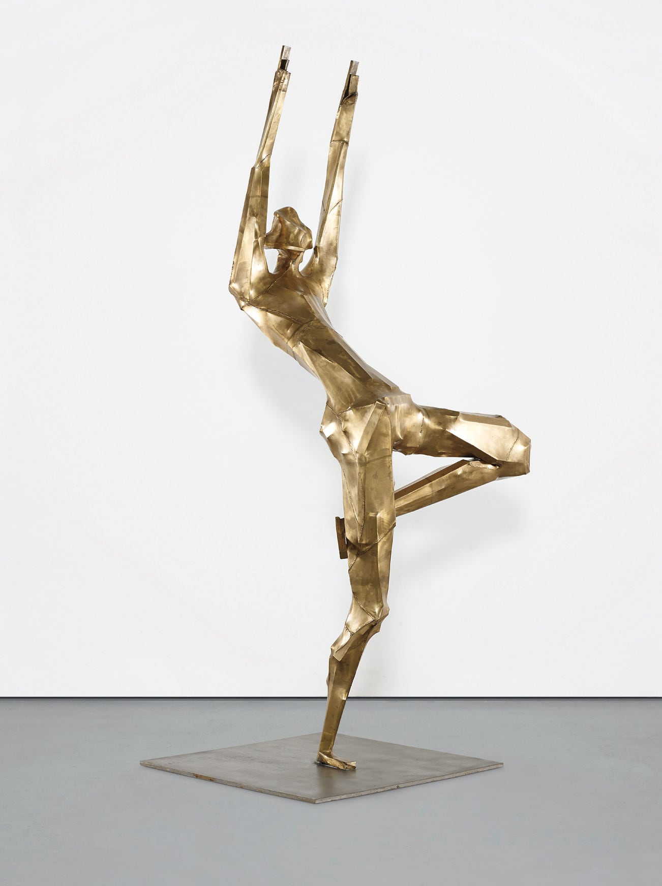 While these two figures appear joyous in their flowing gesture, their broken angular surfaces suggest a dichotomy, and the viewer is left unsure as to whether these statues are in fact celebrating or fighting. Influenced by Alexander and Margarete Mitscherlich’s Die Unfahigkeit zu Trauern (The Inability to Mourn, 1967) and their ideas of “creative stultification” in post-war Germany, Herold’s monumental Heyday statues maintain the isolation of Alberto Giacometti’s figure, while also dynamically engaging with each other.