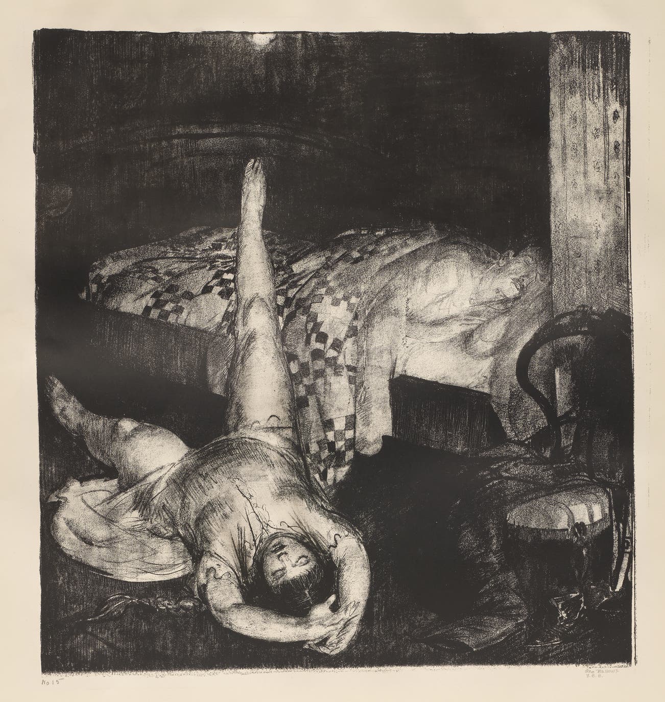Signed posthumously by the artist's daughter Jean Bellows Booth, initialed 'J.B.B.' and numbered 'No 15' in pencil, from the edition of an unknown but presumably small size, printed in the United States, framed.