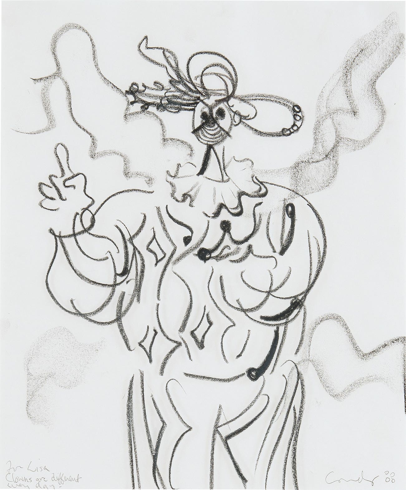 dedicated "For Lisa Clowns are different every day" lower left; signed and dated "Condo 88" lower right