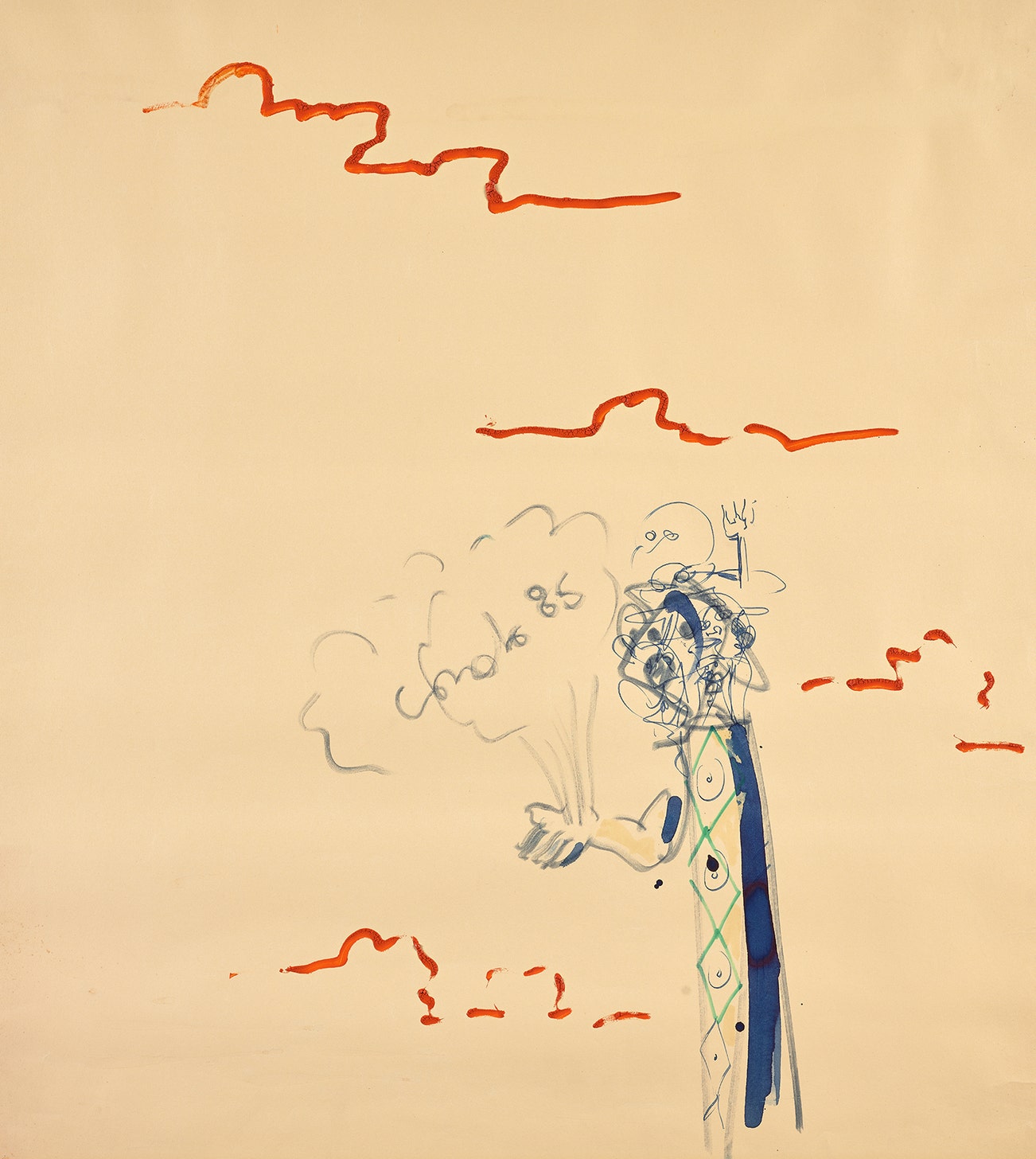 gouache, ink, tempera, crayon and pencil on paper