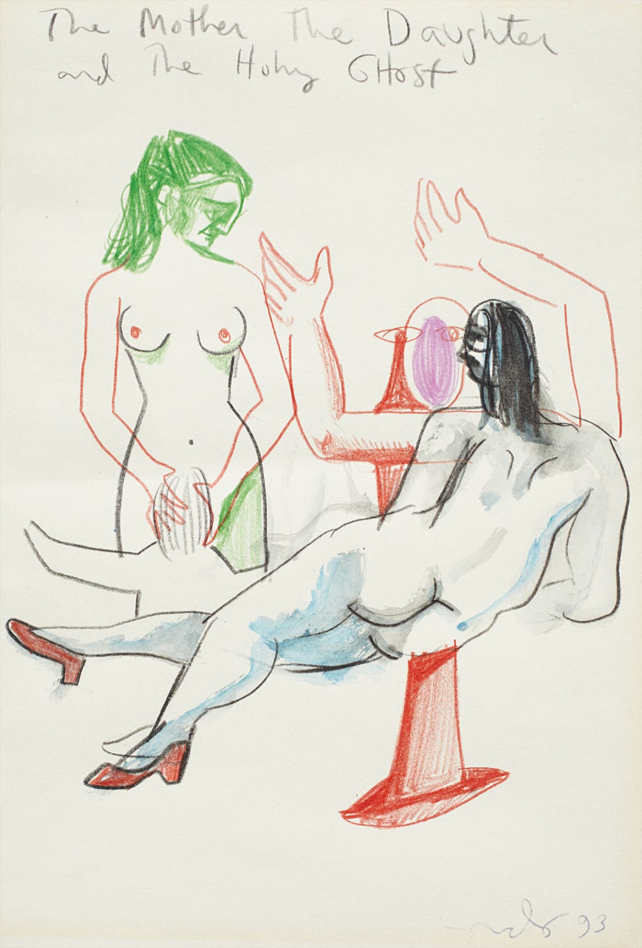 Titled "The Mother The Daughter and The Holy Ghost" upper left; further signed and dated "George Condo 93" lower left.
