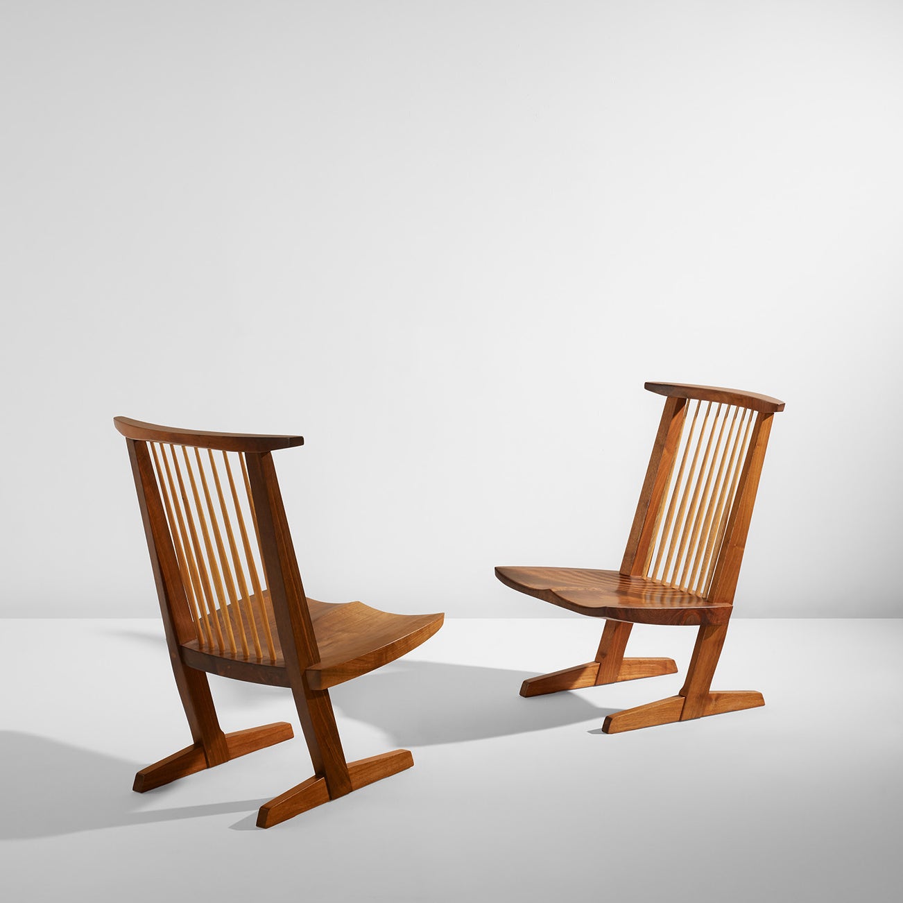 After returning to the U.S. in 1940, Nakashima's family was interned in an American concentration camp, a horrible ordeal that nevertheless introduced him to traditional Japanese joinery by way of a Nisei woodworker he met in the camp. He incorporated these techniques and also drew on American vernacular forms, such as the Windsor chair. These diverse influences have resulted in immense crossover appeal in the world of twentieth-century design collecting.