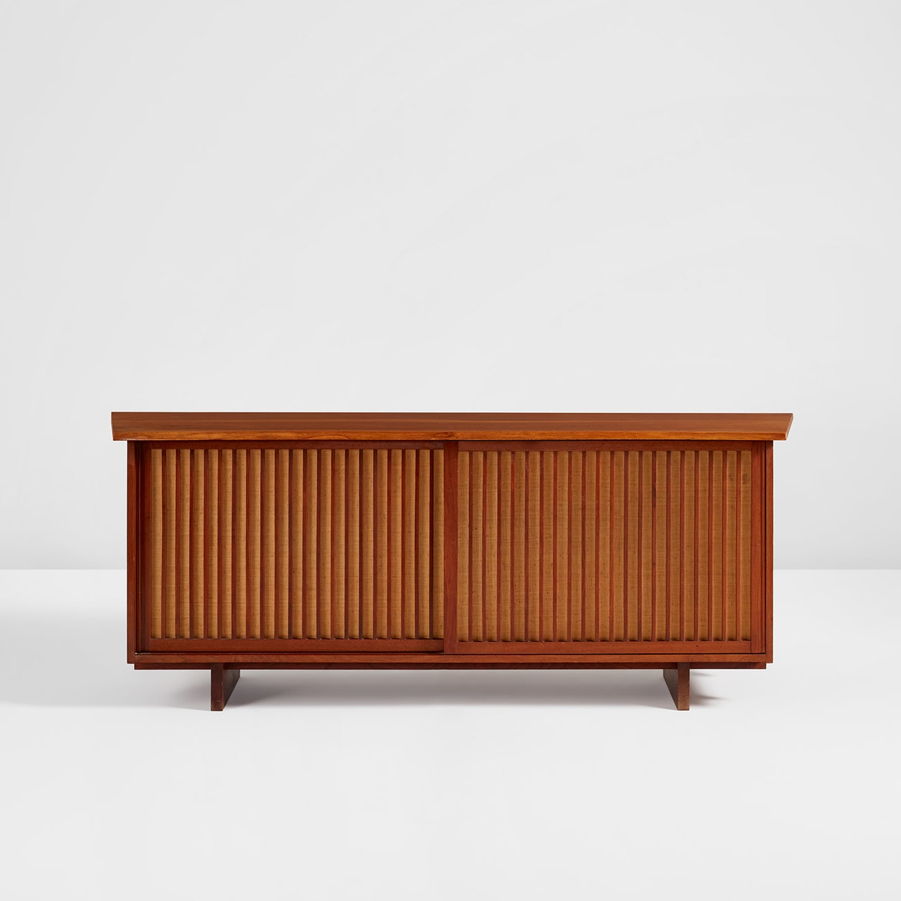 After returning to the U.S. in 1940, Nakashima's family was interned in an American concentration camp, a horrible ordeal that nevertheless introduced him to traditional Japanese joinery by way of a Nisei woodworker he met in the camp. He incorporated these techniques and also drew on American vernacular forms, such as the Windsor chair. These diverse influences have resulted in immense crossover appeal in the world of twentieth-century design collecting.