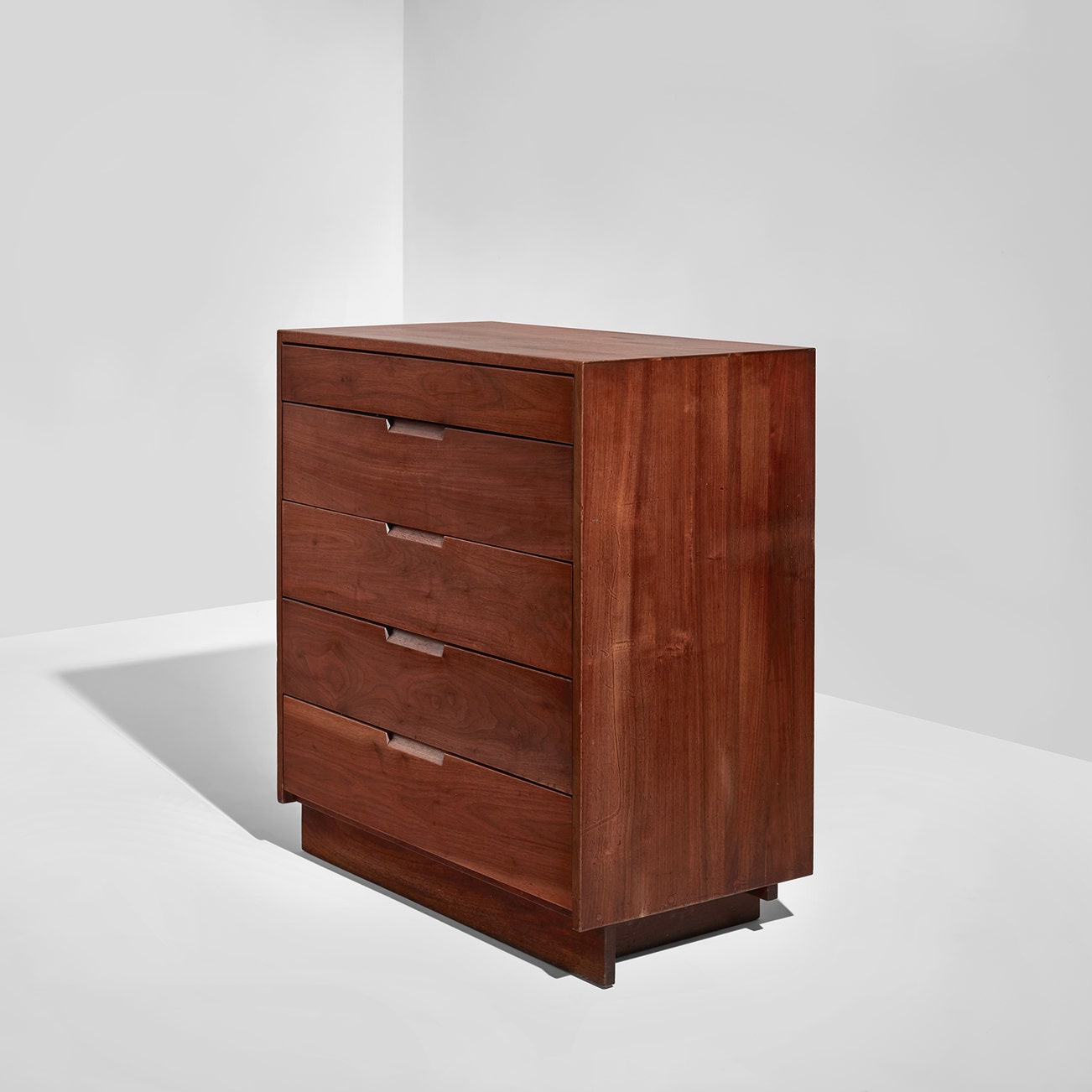 After returning to the U.S. in 1940, Nakashima's family was interned in an American concentration camp, a horrible ordeal that nevertheless introduced him to traditional Japanese joinery by way of a Nisei woodworker he met in the camp. He incorporated these techniques and also drew on American vernacular forms, such as the Windsor chair. These diverse influences have resulted in immense crossover appeal in the world of twentieth-century design collecting.
