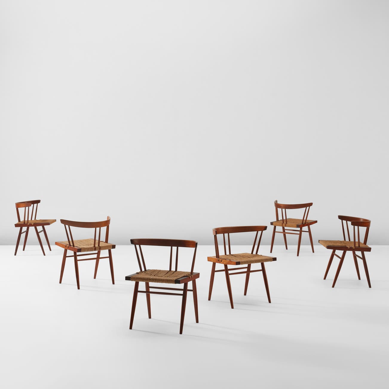 After returning to the U.S. in 1940, Nakashima's family was interned in an American concentration camp, a horrible ordeal that nevertheless introduced him to traditional Japanese joinery by way of a Nisei woodworker he met in the camp. He incorporated these techniques and also drew on American vernacular forms, such as the Windsor chair. These diverse influences have resulted in immense crossover appeal in the world of twentieth-century design collecting.