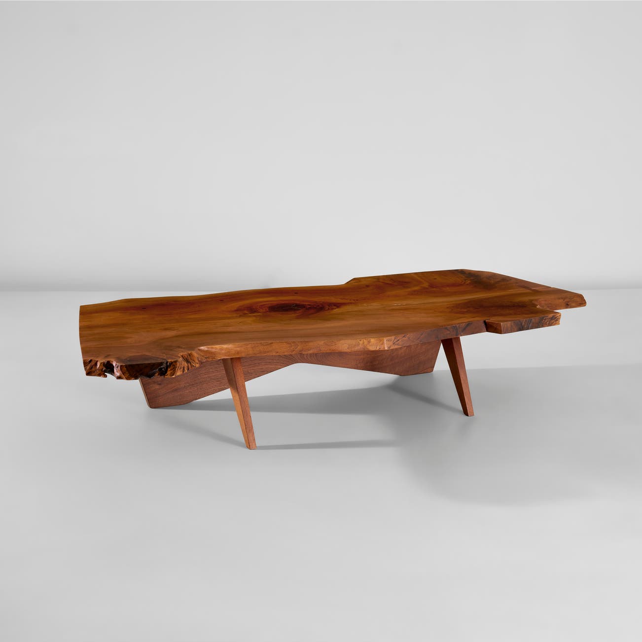 American | B. 1905 D. 1990Working out of his compound in rural New Hope, Pennsylvania, George Nakashima produced some of the most original and influential furniture designs of the post-war era. Nakashima aimed to give trees a second life, choosing solid wood over veneers and designing his furniture to highlight the inherent beauty of the wood, such as the form and grain. To this end, his tables often feature freeform edges, natural fissures and knot holes. Nakashima was an MIT-trained architect and traveled widely in his youth, gaining exposure to modernist design the world over.