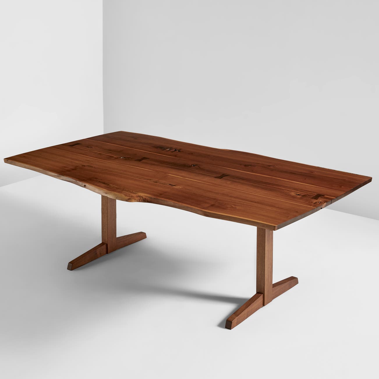American | B. 1905 D. 1990Working out of his compound in rural New Hope, Pennsylvania, George Nakashima produced some of the most original and influential furniture designs of the post-war era. Nakashima aimed to give trees a second life, choosing solid wood over veneers and designing his furniture to highlight the inherent beauty of the wood, such as the form and grain. To this end, his tables often feature freeform edges, natural fissures and knot holes. Nakashima was an MIT-trained architect and traveled widely in his youth, gaining exposure to modernist design the world over.