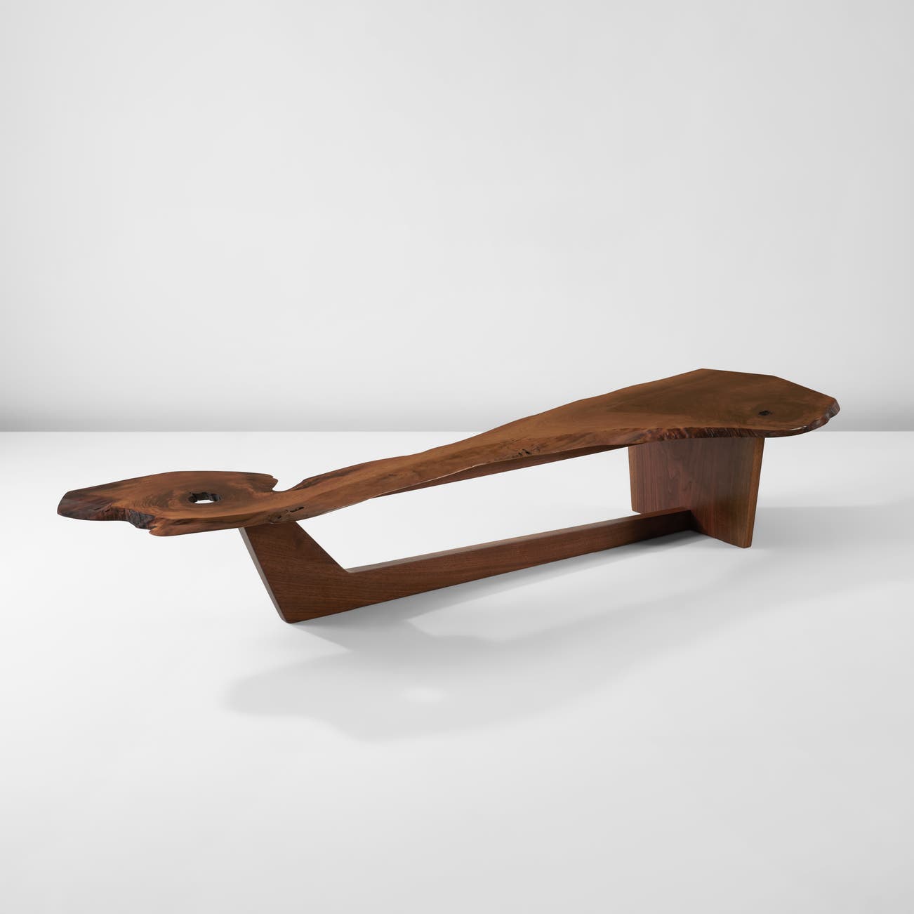 After returning to the U.S. in 1940, Nakashima's family was interned in an American concentration camp, a horrible ordeal that nevertheless introduced him to traditional Japanese joinery by way of a Nisei woodworker he met in the camp. He incorporated these techniques and also drew on American vernacular forms, such as the Windsor chair. These diverse influences have resulted in immense crossover appeal in the world of twentieth-century design collecting.
