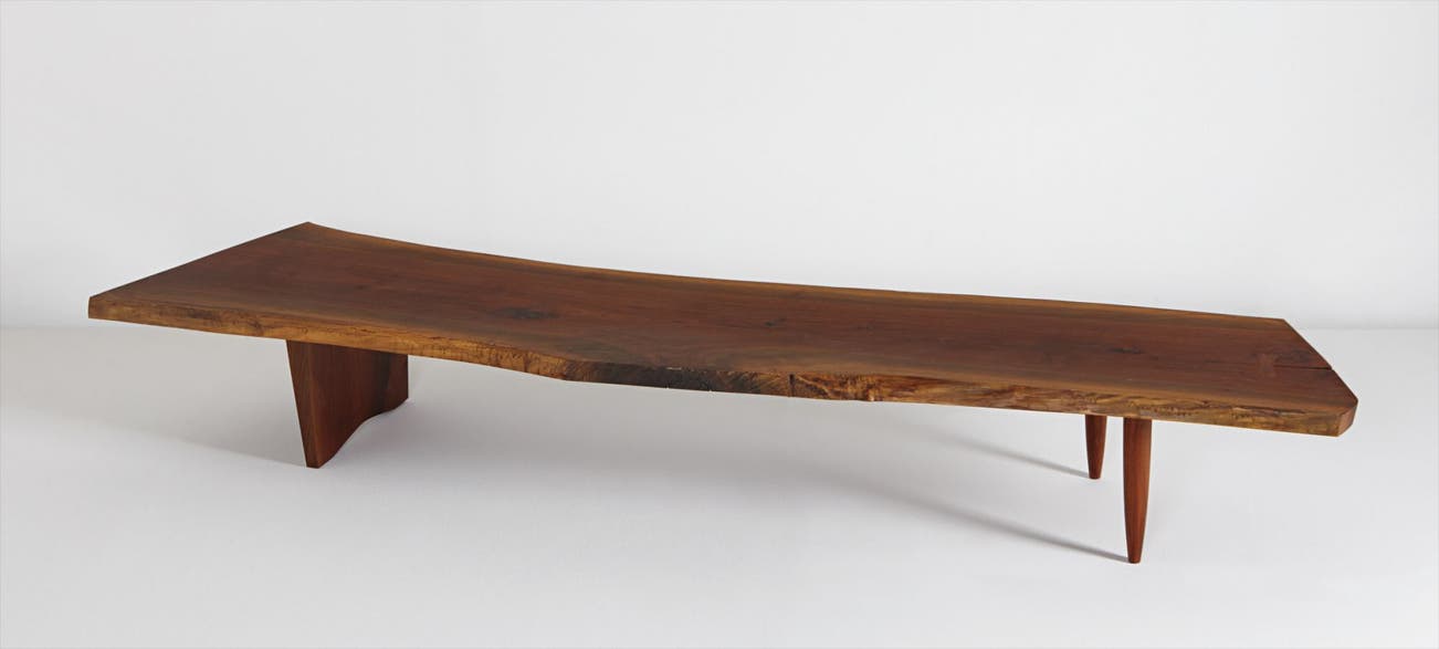 American | B. 1905 D. 1990Working out of his compound in rural New Hope, Pennsylvania, George Nakashima produced some of the most original and influential furniture designs of the post-war era. Nakashima aimed to give trees a second life, choosing solid wood over veneers and designing his furniture to highlight the inherent beauty of the wood, such as the form and grain. To this end, his tables often feature freeform edges, natural fissures and knot holes. Nakashima was an MIT-trained architect and traveled widely in his youth, gaining exposure to modernist design the world over.