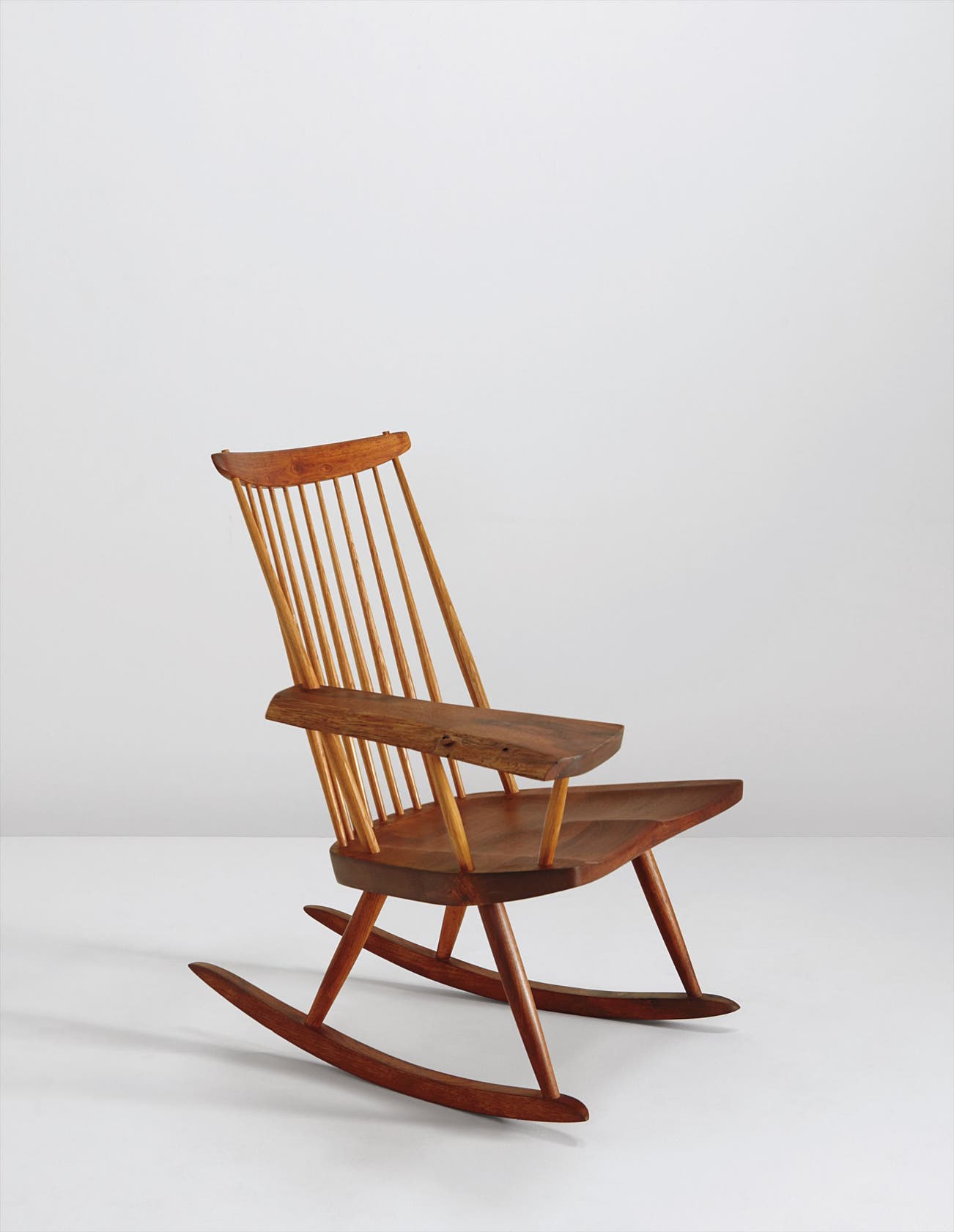 After returning to the U.S. in 1940, Nakashima's family was interned in an American concentration camp, a horrible ordeal that nevertheless introduced him to traditional Japanese joinery by way of a Nisei woodworker he met in the camp. He incorporated these techniques and also drew on American vernacular forms, such as the Windsor chair. These diverse influences have resulted in immense crossover appeal in the world of twentieth-century design collecting.