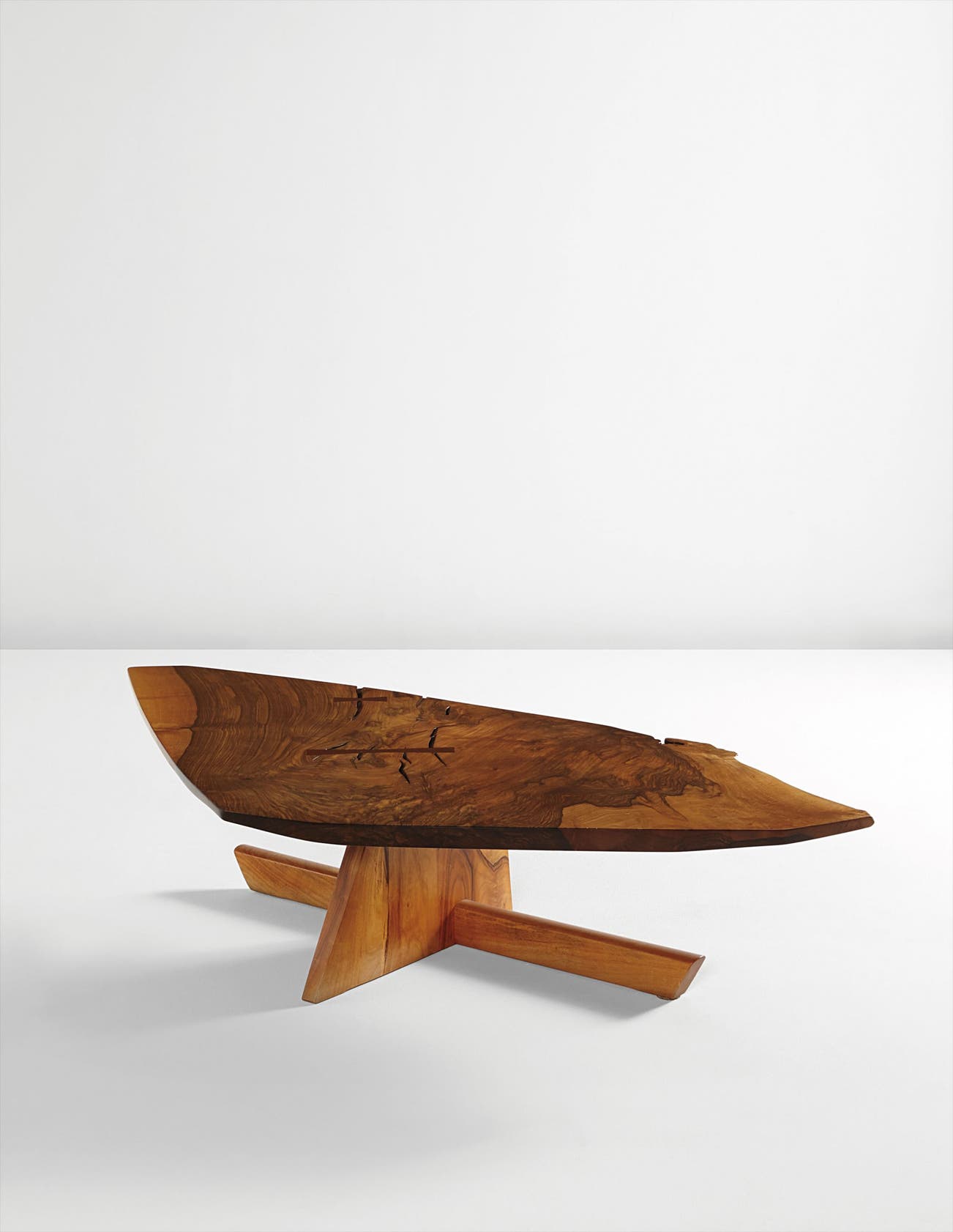 American | B. 1905 D. 1990Working out of his compound in rural New Hope, Pennsylvania, George Nakashima produced some of the most original and influential furniture designs of the post-war era. Nakashima aimed to give trees a second life, choosing solid wood over veneers and designing his furniture to highlight the inherent beauty of the wood, such as the form and grain. To this end, his tables often feature freeform edges, natural fissures and knot holes. Nakashima was an MIT-trained architect and traveled widely in his youth, gaining exposure to modernist design the world over.