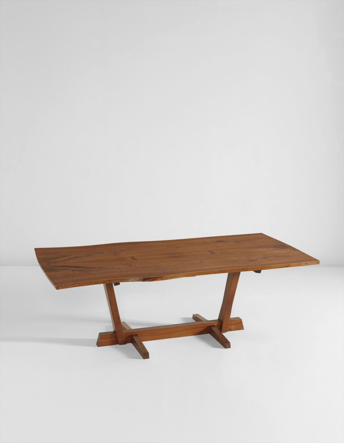American | B. 1905 D. 1990Working out of his compound in rural New Hope, Pennsylvania, George Nakashima produced some of the most original and influential furniture designs of the post-war era. Nakashima aimed to give trees a second life, choosing solid wood over veneers and designing his furniture to highlight the inherent beauty of the wood, such as the form and grain. To this end, his tables often feature freeform edges, natural fissures and knot holes. Nakashima was an MIT-trained architect and traveled widely in his youth, gaining exposure to modernist design the world over.