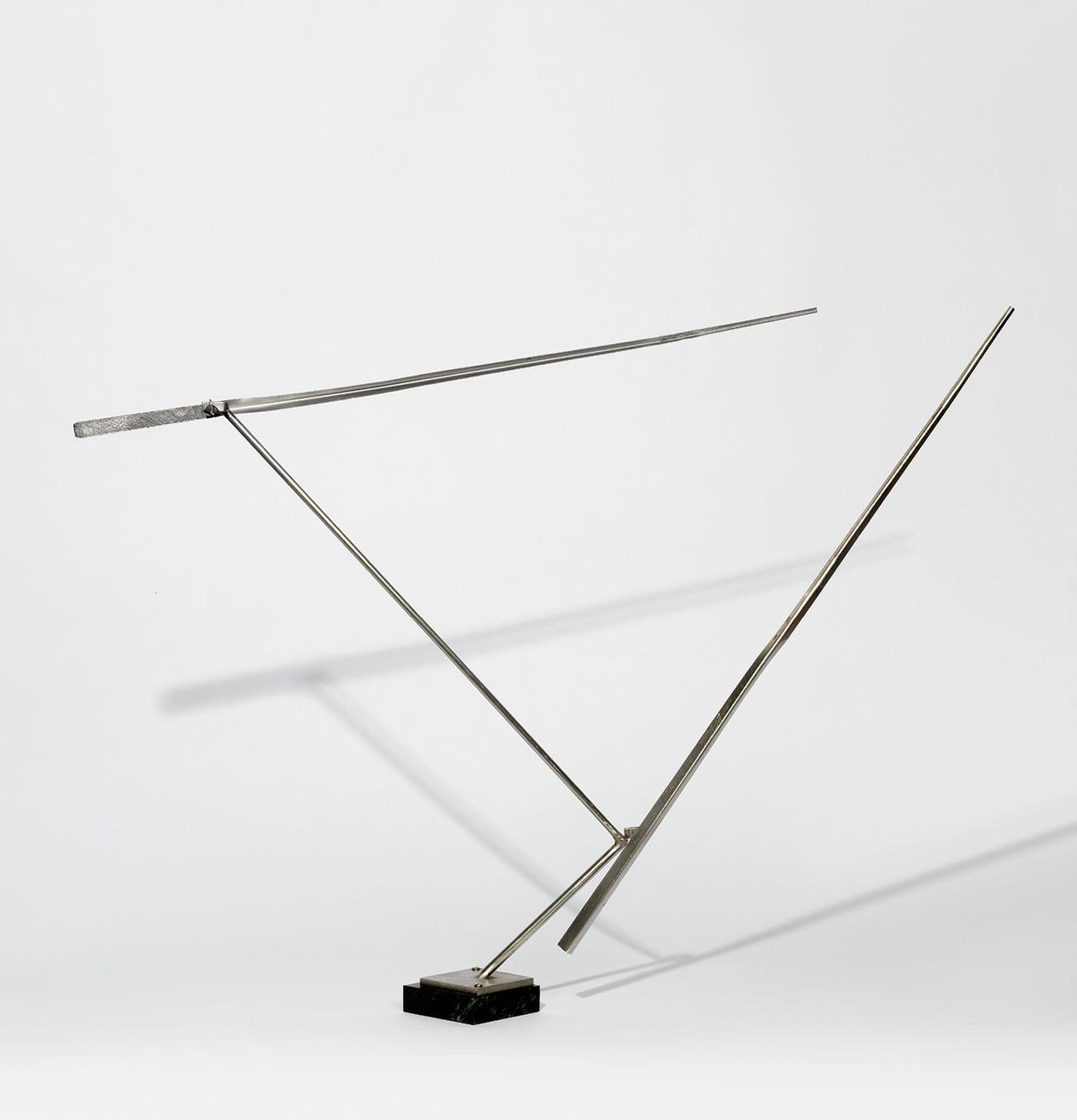 incised with the artist's signature, number and date "1/3 Rickey 1975" on the base; partially titled "2 Fixed, 2 Moving" on the underside of the base