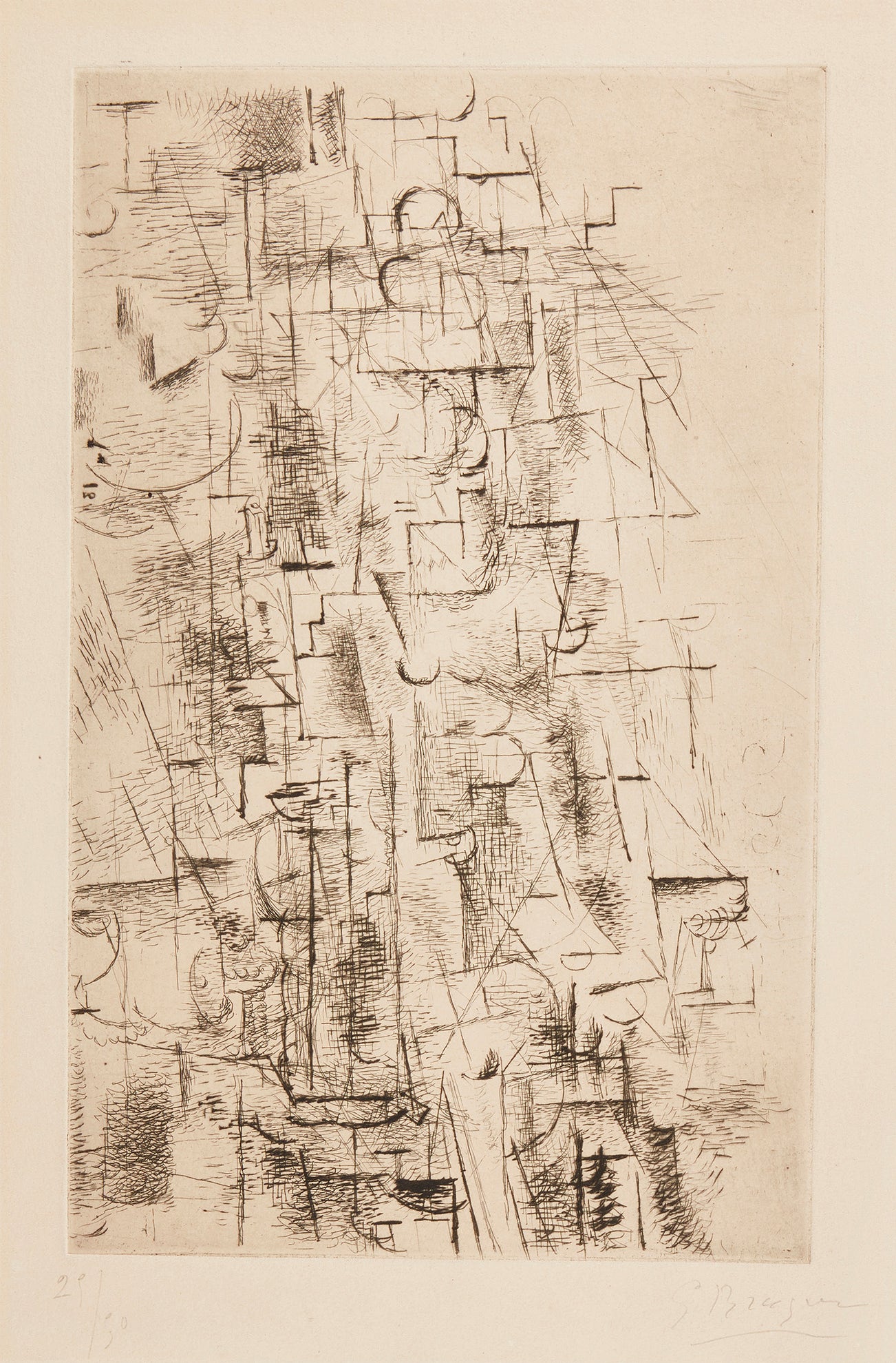 'Brilliant intellect, lucid spirit, Braque knows how mysterious creation is. In all his vision he seeks not only to penetrate this mystery, but to preserve it…In between maximum and maximum are his sketches, tumultuous or reduced to essentials, spontaneous notations or intense research, caprices of mind, caprices of hand; in them all one can trace from step to step, the reactions of his genius to this or that simple object. An object of everyday life, miraculous enough: vase, plant, table, coal-scuttle, a woman’s profile, all-absorbing and obsessive, to be seized upon and deformed and reformed, destroyed indeed and resuscitated from its destruction in that no less real and valid shadow, the form we shall see in a painting'. Jean Cassoulet, preface in Braque, The Museum of Modern Art, New York, Henry R. Hope and William S. Lieberman, 1949, pp. 7-8
