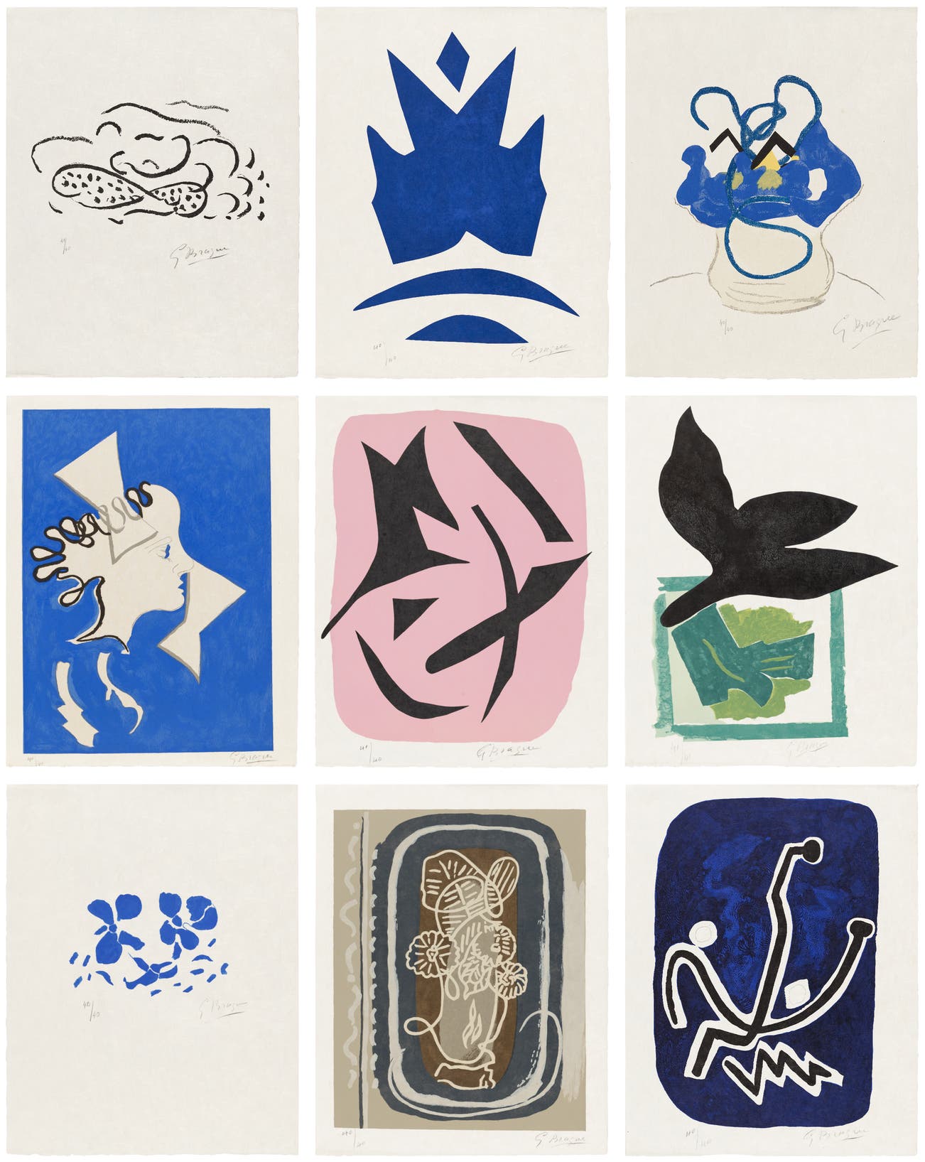 The set on rag paper signed in pencil and numbered '68' (printed) on the justification (the total edition was 180), the suite on Japon nacré all signed, one with initials, and numbered 40/40 in pencil, published by Louis Broder, Paris, printed in Paris.