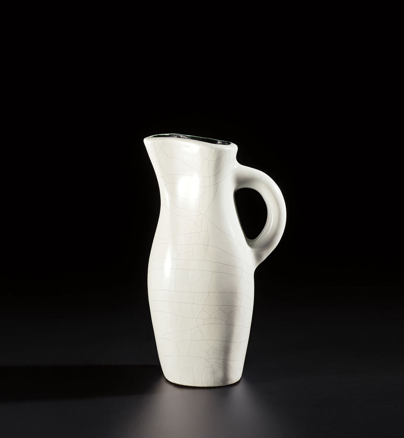 French | B. 1910 D. 1964Working out of his studio in Paris (and later in Aix-en-Provence), Georges Jouve produced sculptural ceramics for modernist interiors. Upon the invitation of Jacques Adnet, the director of the Compagnie des Arts Français (CAF), Jouve participated in various salons internationally and within France, including the Salon des Artistes Décorateurs. He created rigorously simple yet soft and playful forms, including plump, contrapposto vessels, rotund pitchers and cylindrical vases. His tireless experimentation of glazes led to a palette of perfect matte blacks, bone whites and joyful pops of lime green, lemony yellow and, occasionally, selenium red. Jouve's ceramics echo the organic modernism of his CAF colleagues, such as Charlotte Perriand and Serge Mouille.