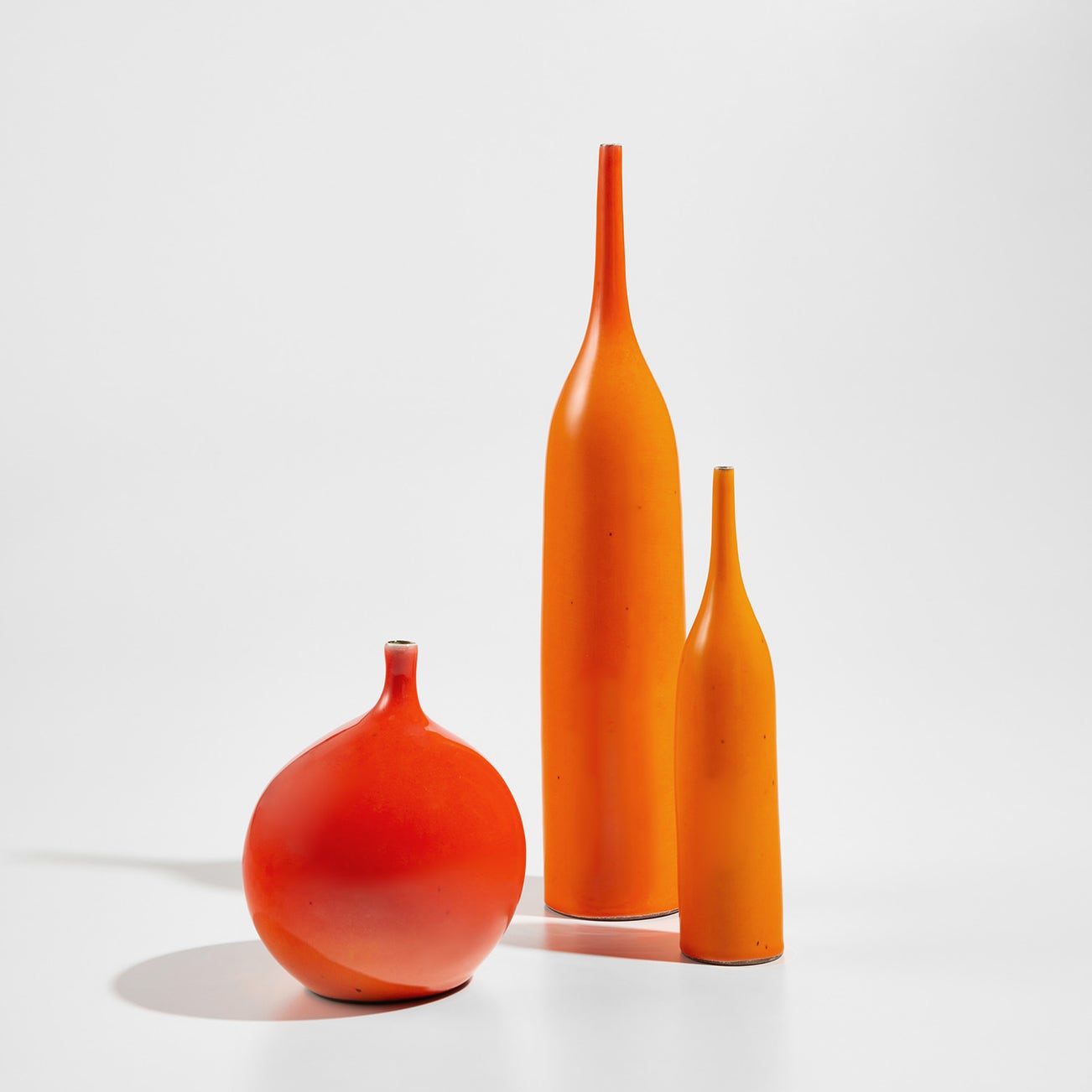 French | B. 1910 D. 1964Working out of his studio in Paris (and later in Aix-en-Provence), Georges Jouve produced sculptural ceramics for modernist interiors. Upon the invitation of Jacques Adnet, the director of the Compagnie des Arts Français (CAF), Jouve participated in various salons internationally and within France, including the Salon des Artistes Décorateurs. He created rigorously simple yet soft and playful forms, including plump, contrapposto vessels, rotund pitchers and cylindrical vases. His tireless experimentation of glazes led to a palette of perfect matte blacks, bone whites and joyful pops of lime green, lemony yellow and, occasionally, selenium red. Jouve's ceramics echo the organic modernism of his CAF colleagues, such as Charlotte Perriand and Serge Mouille.
