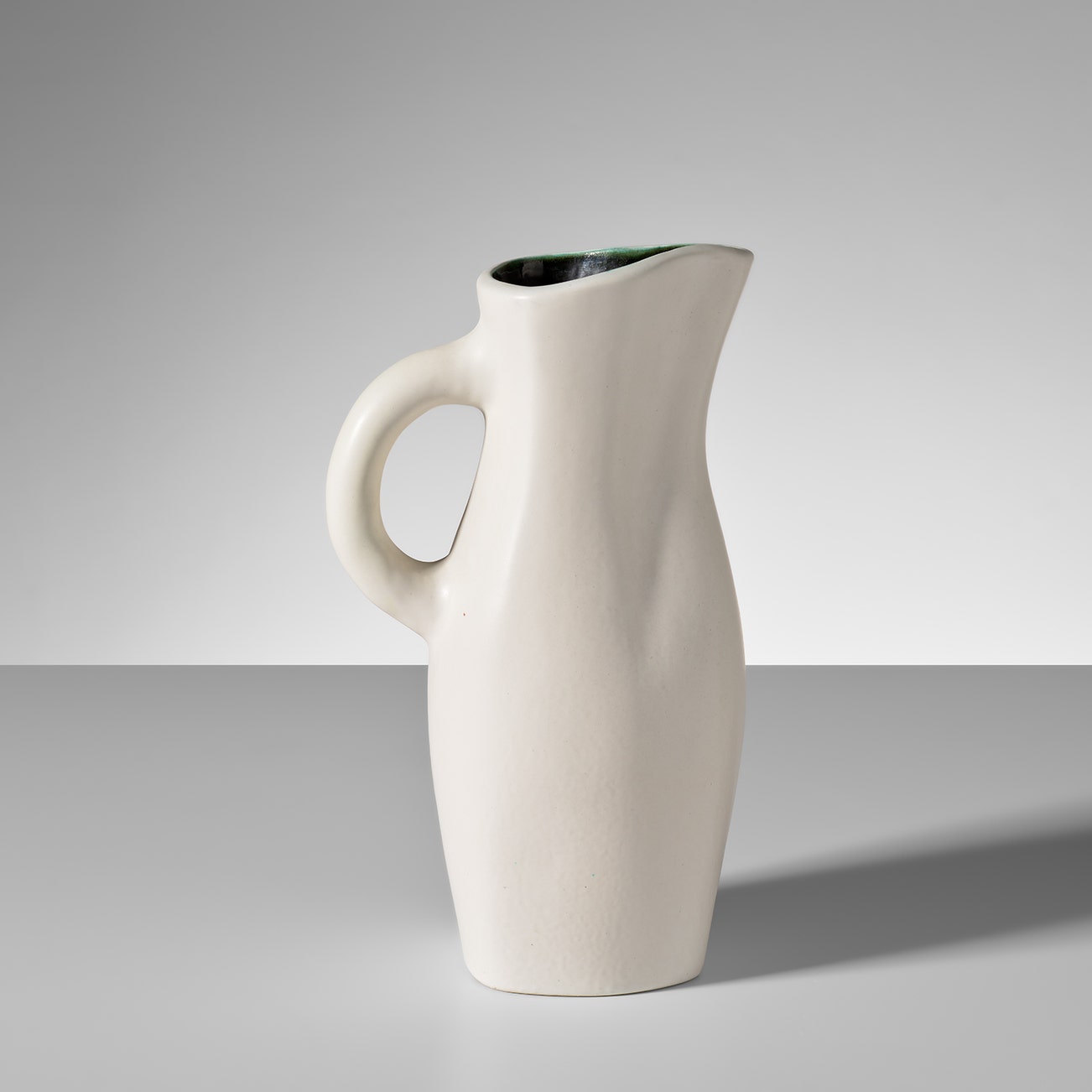 French | B. 1910 D. 1964Working out of his studio in Paris (and later in Aix-en-Provence), Georges Jouve produced sculptural ceramics for modernist interiors. Upon the invitation of Jacques Adnet, the director of the Compagnie des Arts Français (CAF), Jouve participated in various salons internationally and within France, including the Salon des Artistes Décorateurs. He created rigorously simple yet soft and playful forms, including plump, contrapposto vessels, rotund pitchers and cylindrical vases. His tireless experimentation of glazes led to a palette of perfect matte blacks, bone whites and joyful pops of lime green, lemony yellow and, occasionally, selenium red. Jouve's ceramics echo the organic modernism of his CAF colleagues, such as Charlotte Perriand and Serge Mouille.