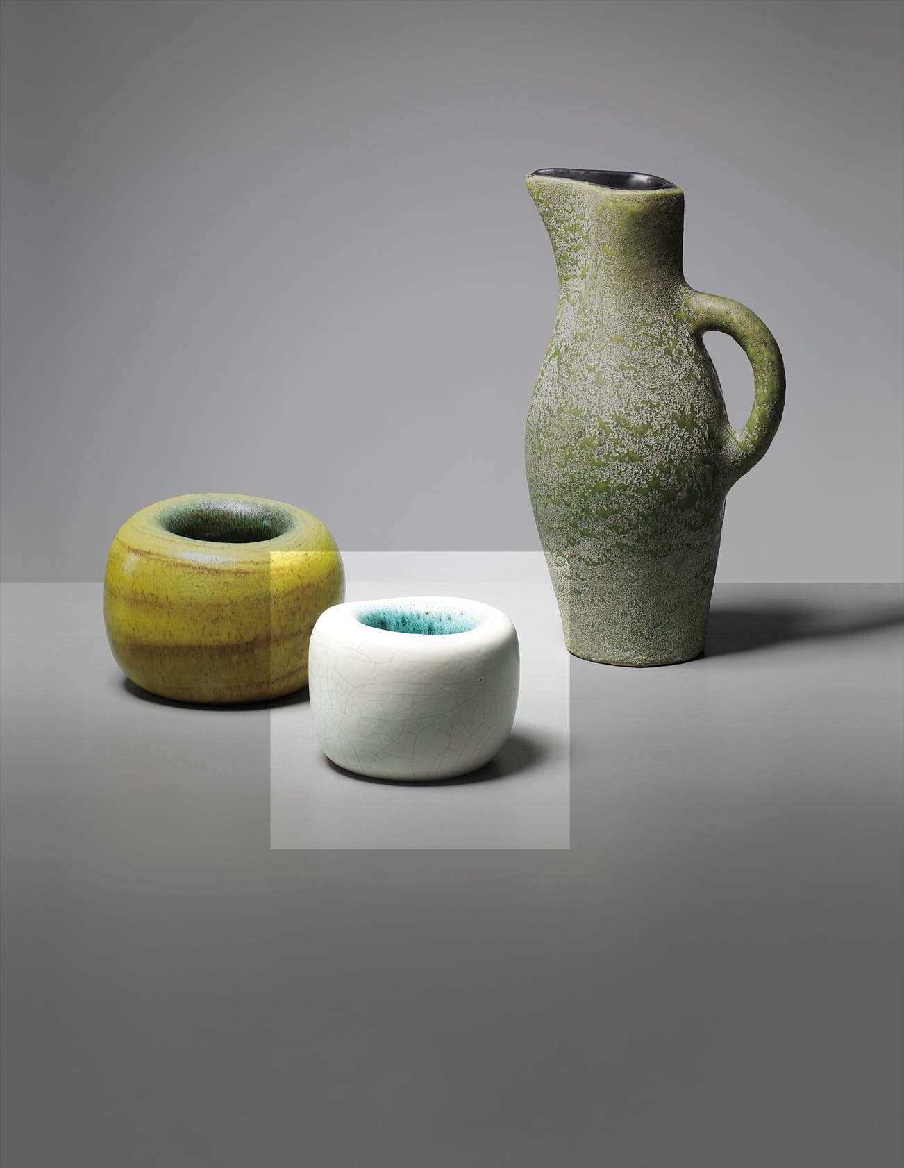French | B. 1910 D. 1964Working out of his studio in Paris (and later in Aix-en-Provence), Georges Jouve produced sculptural ceramics for modernist interiors. Upon the invitation of Jacques Adnet, the director of the Compagnie des Arts Français (CAF), Jouve participated in various salons internationally and within France, including the Salon des Artistes Décorateurs. He created rigorously simple yet soft and playful forms, including plump, contrapposto vessels, rotund pitchers and cylindrical vases. His tireless experimentation of glazes led to a palette of perfect matte blacks, bone whites and joyful pops of lime green, lemony yellow and, occasionally, selenium red. Jouve's ceramics echo the organic modernism of his CAF colleagues, such as Charlotte Perriand and Serge Mouille.