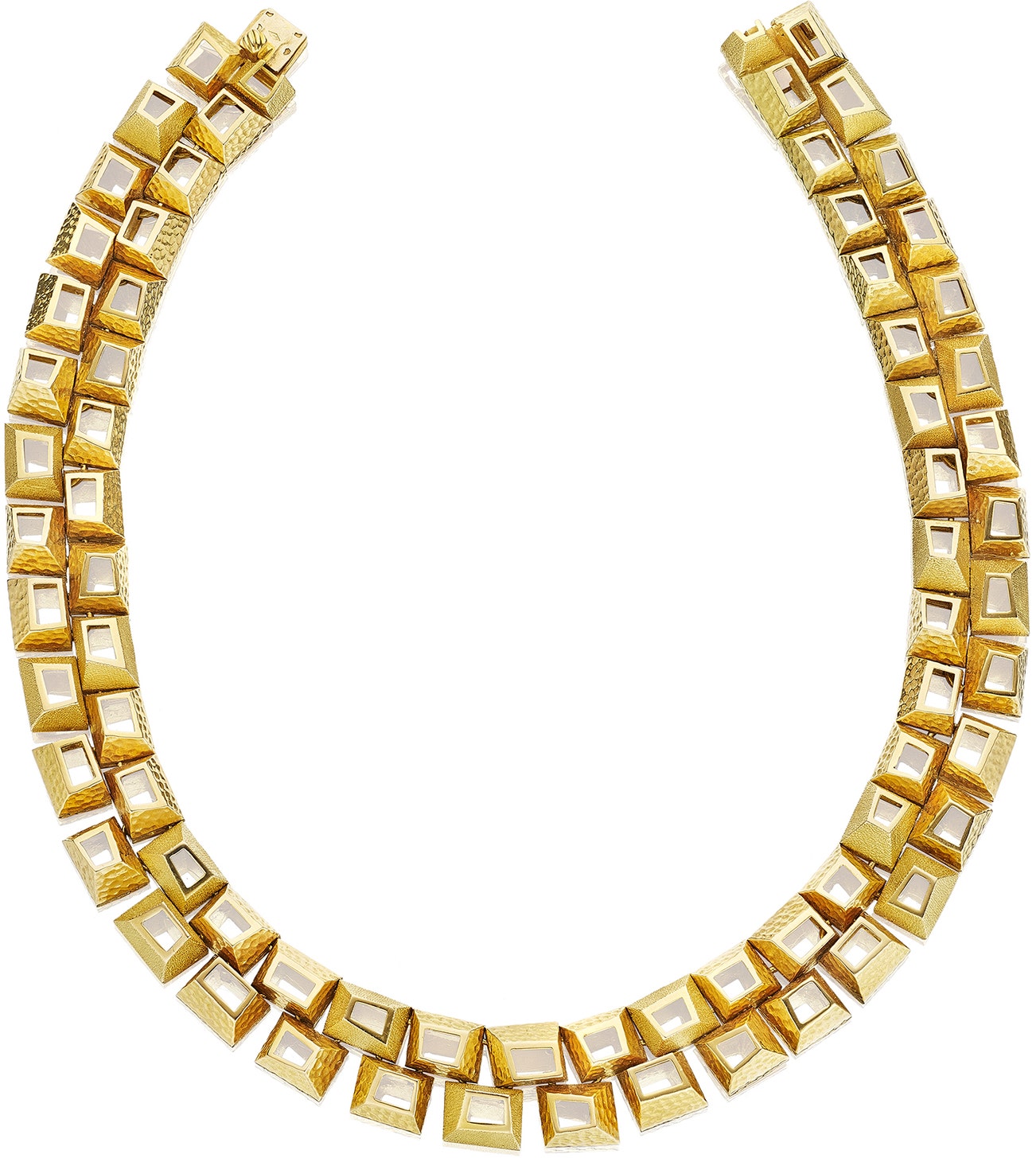 Designed as a double row of pyramids, mounted in 18K yellow gold, length approximately 15 1/2 inches, numbered indistinctly, with French assay marks and maker's mark for Georges L'Enfant.